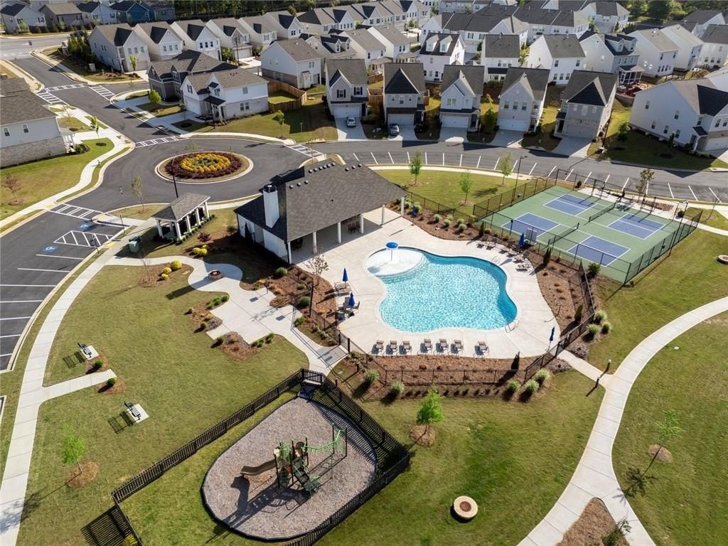 The garage includes a Tesla EV charger, adding eco-friendly functionality to your daily routine. And the location? Simply unbeatable. As the first lot beside the amenities, you’re just steps from the clubhouse, pool, cabana, pickleball courts, firepit, and playground—plus direct access to the Silver Comet Trail, where biking, walking, and outdoor adventures await.