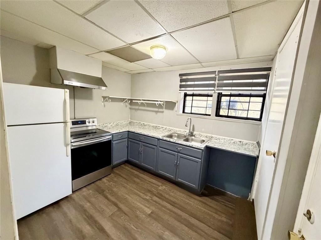 The finished lower level offers a versatile space with a large room, walk-in closet, full bath, and secondary kitchen—ideal for an in-law suite, guest space, home office, or recreation room.