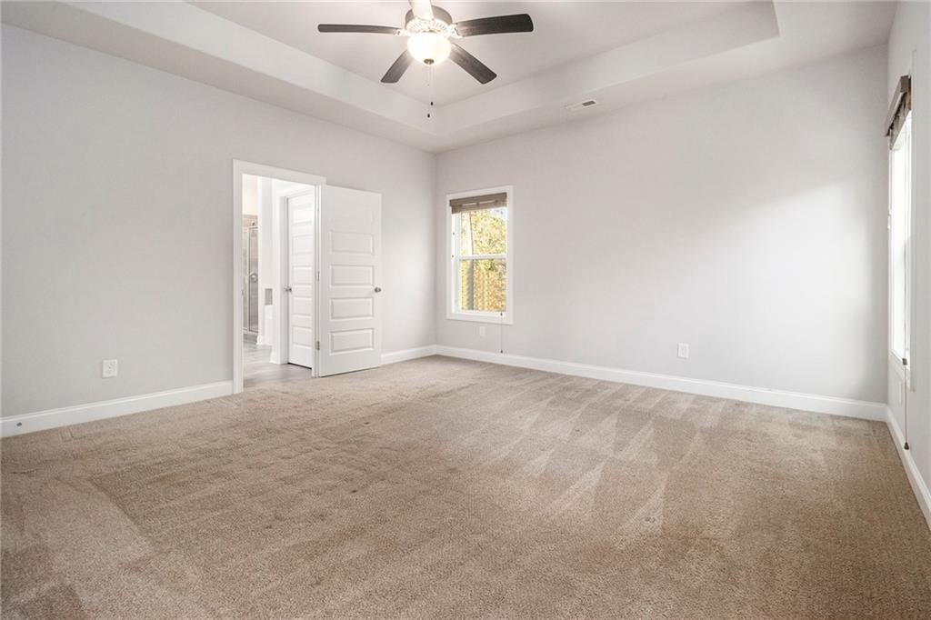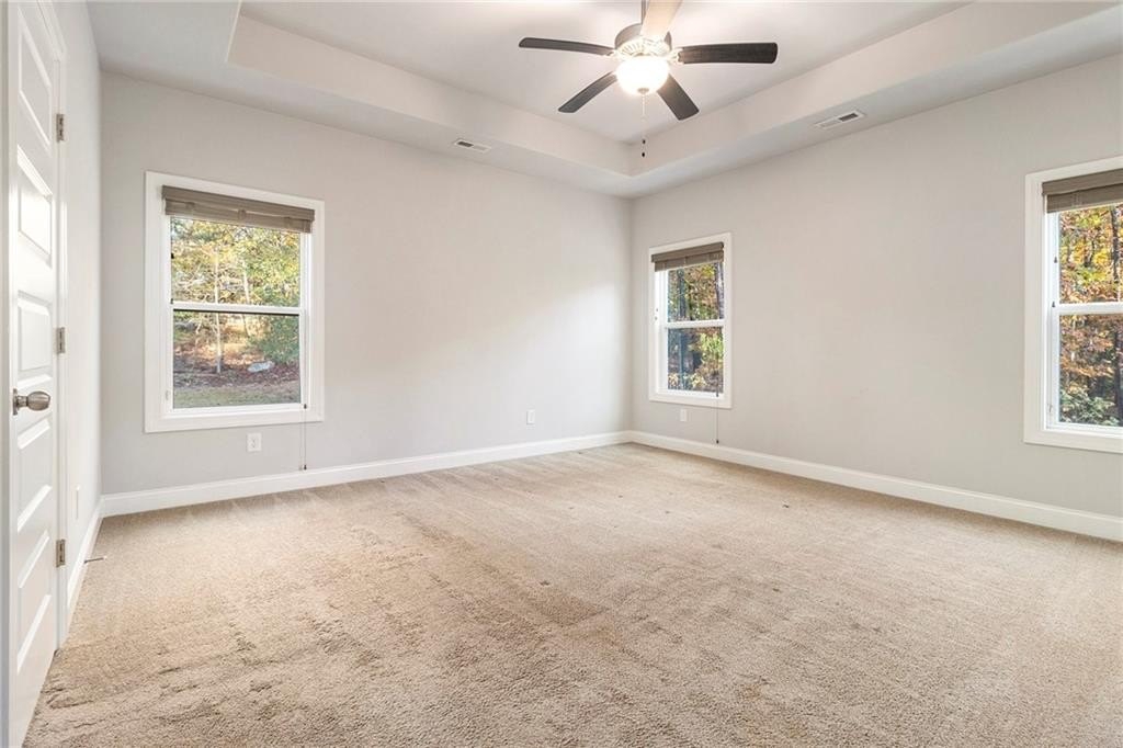 Welcome home to 125 Silver Lake Way, located in the Canoe Club. This property is located in the cul-de-sac on a 1.34-acre lot. It will convey with the neighboring 2.44 acre parcel. You will enjoy a private backyard surrounded by trees and direct lake frontage on both lots. Inside you will find an open-concept kitchen with large island, granite countertops, and seamless flow into the great room-ideal for entertaining and everyday living. The primary suite is located on the main level along with a secondary bedroom/home office and separate dining room. The second floor has two large bedrooms each with walk-in closets and a full bath with dual vanities. On the terrace level there is a finished media room with wet bar space, ice-maker, and wine cooler. There is plenty of space in the basement to continue to expand. Enjoy the covered back deck and fenced in back yard. The Canoe Club community is complete with a Jr. Olympic pool, tennis courts, two lakes for fishing or canoeing, a clubhouse, and 24-hour fitness center. Located just 25 minutes to the airport. This home comes with a one year home warranty.
