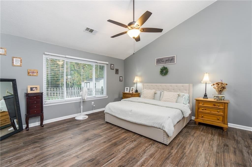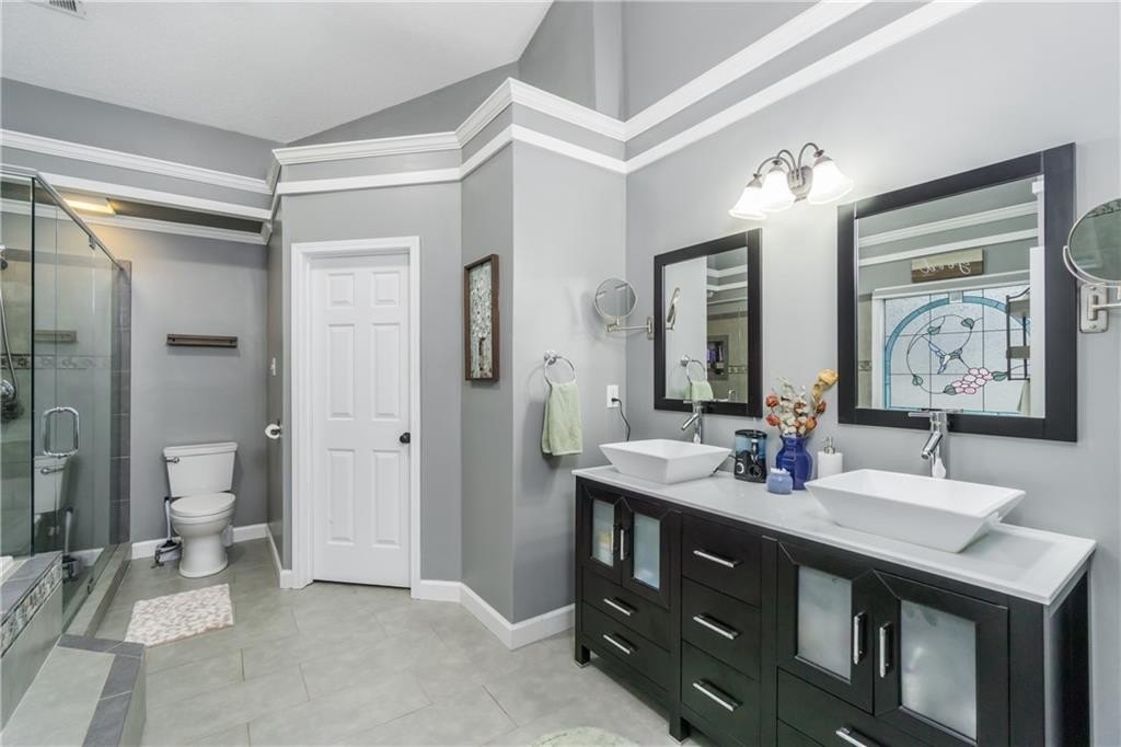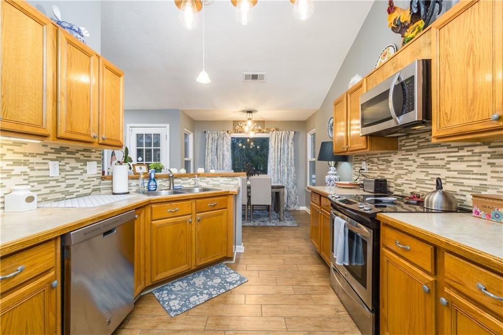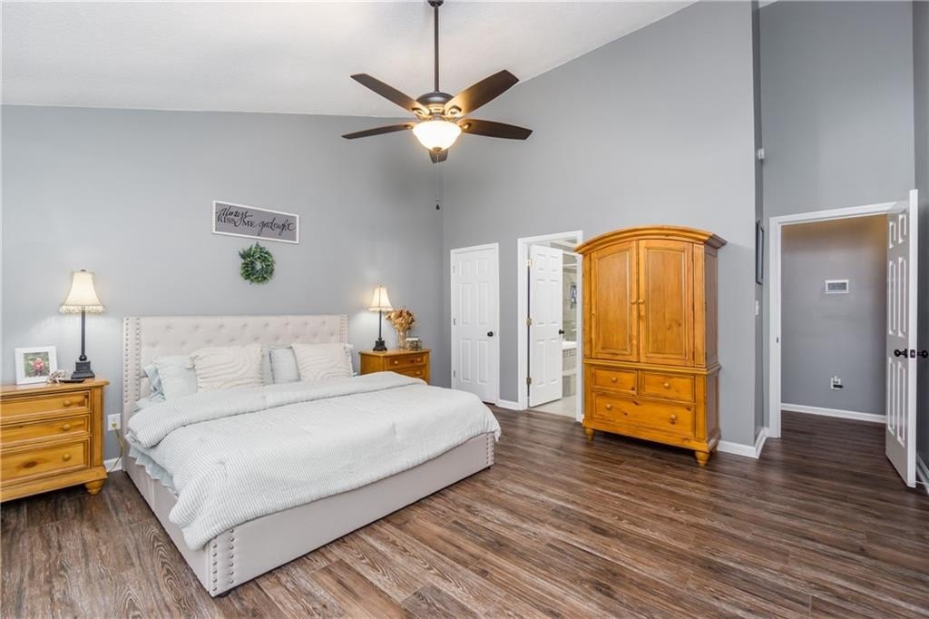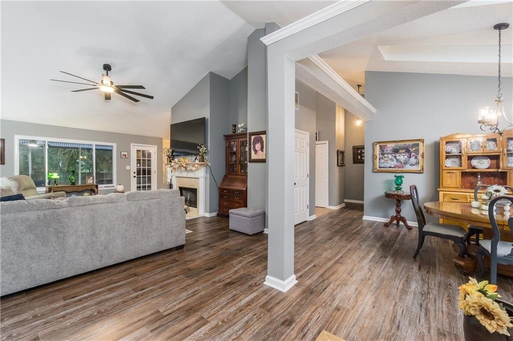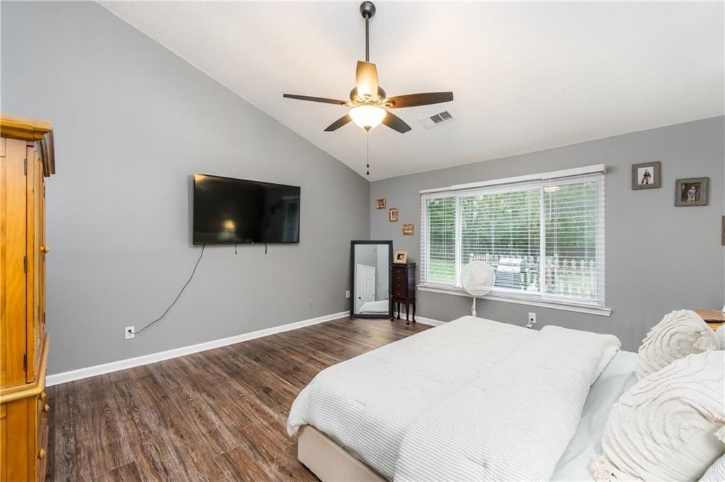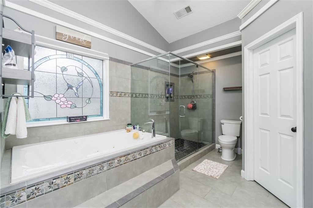 Step inside to find maintenance-free LVP flooring throughout, vaulted ceilings in the main living area and master suite, and an updated kitchen featuring stainless steel appliances. The master bathroom has been tastefully remodeled, adding a touch of modern luxury.