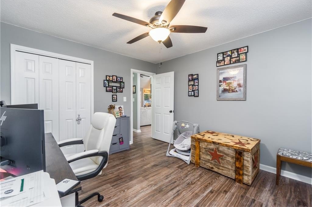 Major upgrades include new windows with a transferable lifetime warranty, new roof and gutters (2024), and a new HVAC system—all providing peace of mind for years to come. The fenced backyard offers privacy and relaxation, with electrical already in place for a hot tub on the back patio. Additional highlights include a new security system and extra storage racks in the garage.