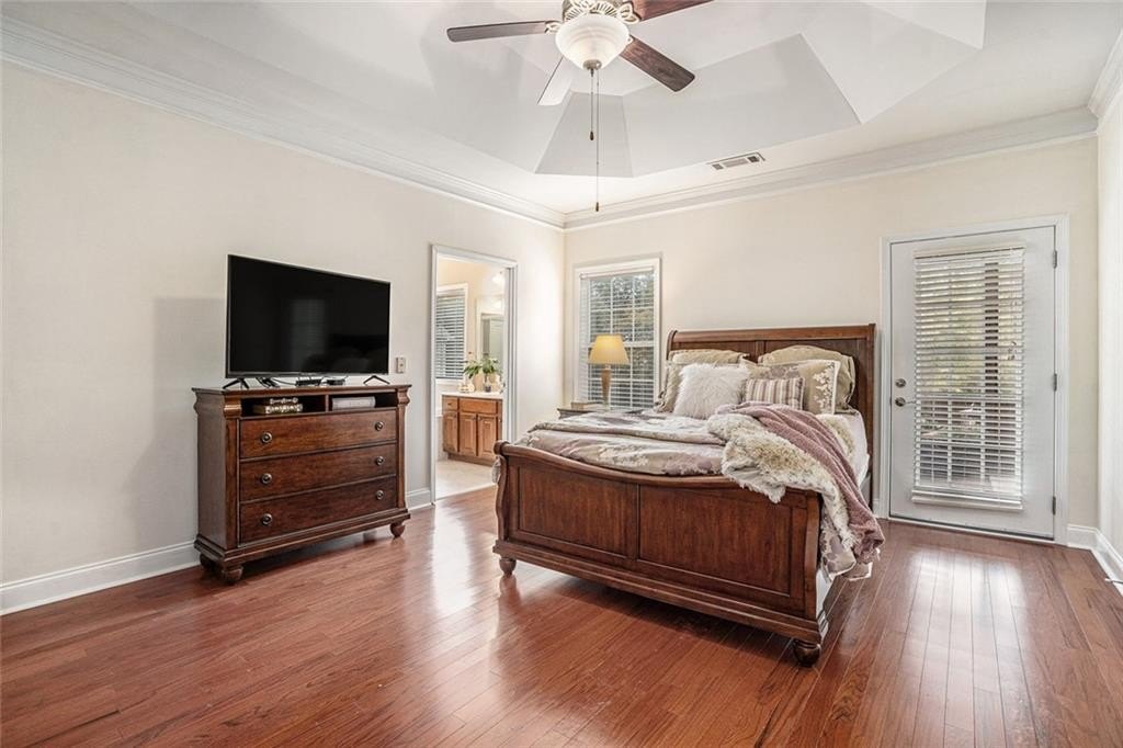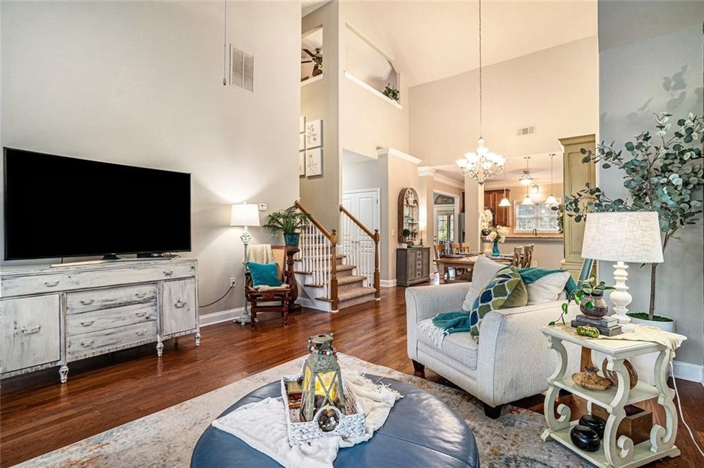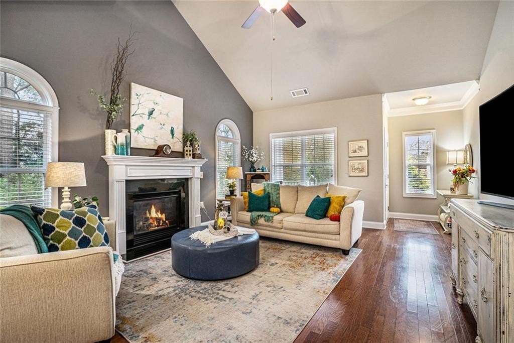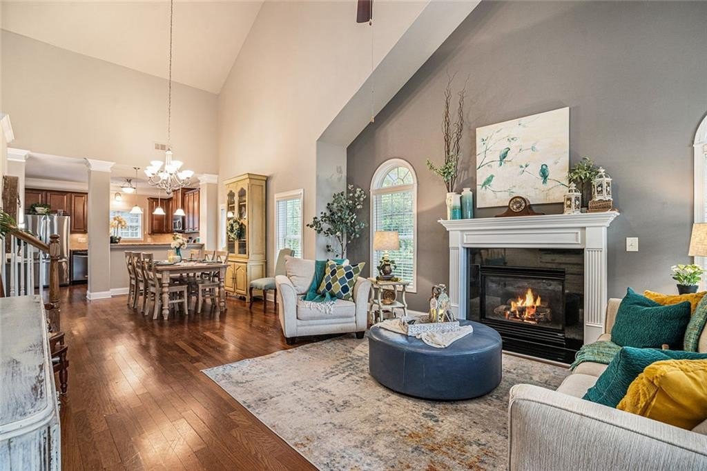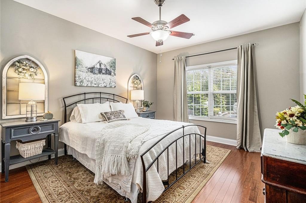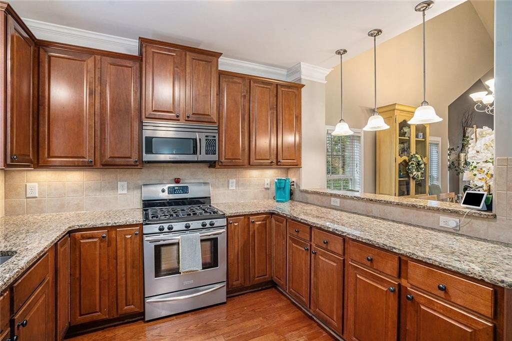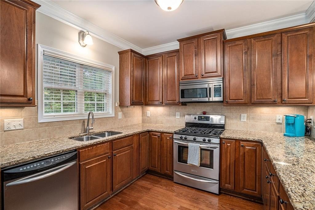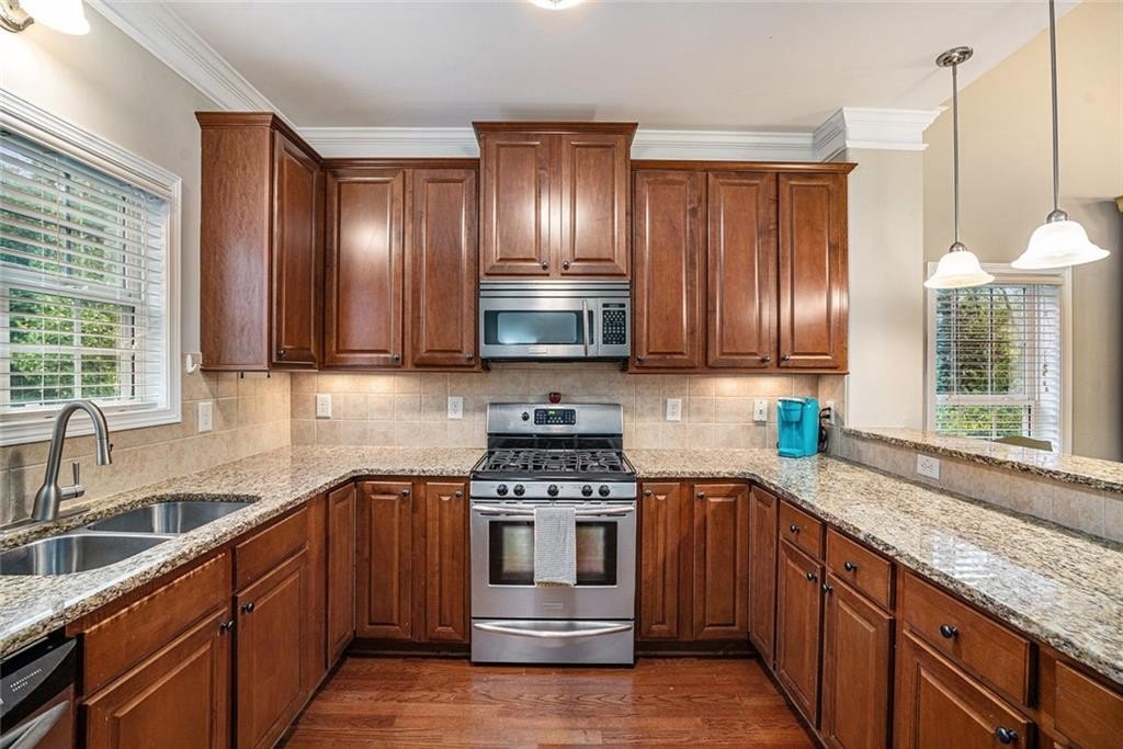 This comfortable home welcomes you through an inviting open floor plan with warm hardwood flooring, high ceilings and plenty of natural light. The heart of the home is the chef-style kitchen with rich wood cabinetry, granite counters and stainless appliances flowing seamlessly into the dining and living space — ideal both for everyday family life and elegant entertaining. The main level features a gracious master suite, while upstairs you’ll find additional bedroom space with full bath and loft for guests or family.