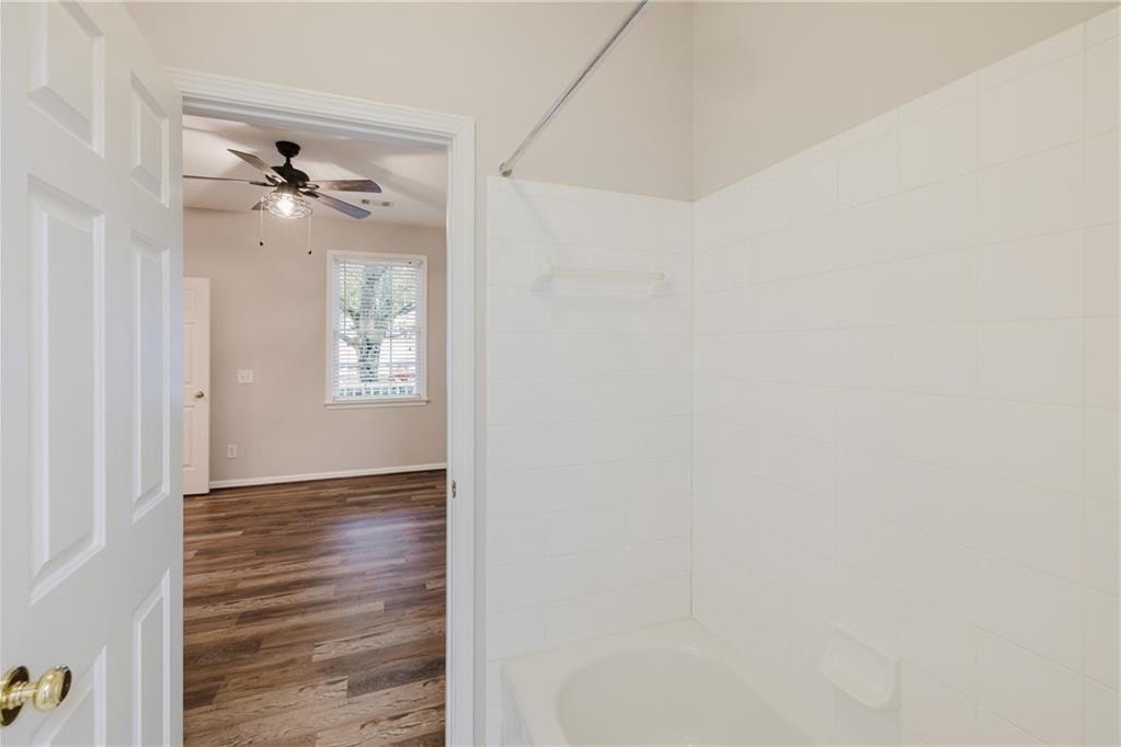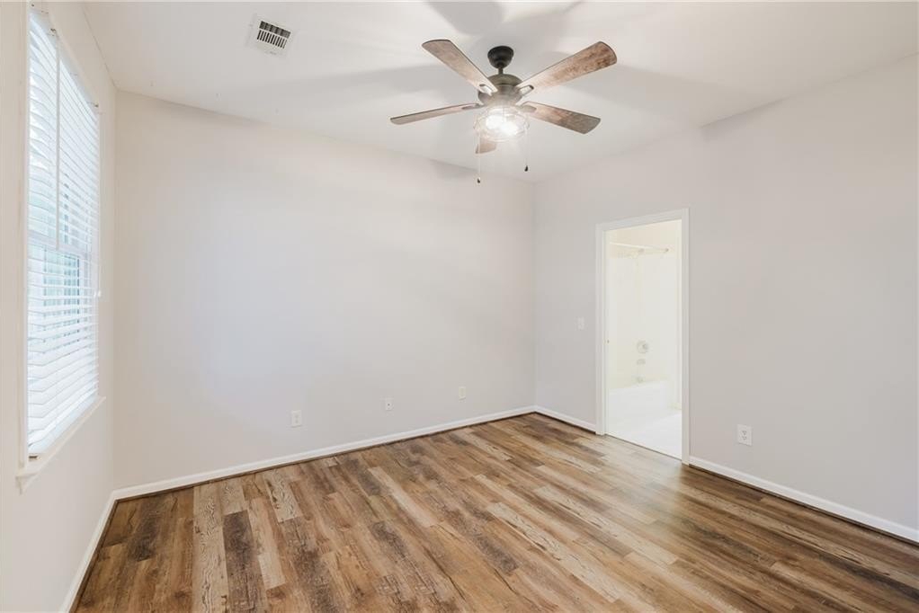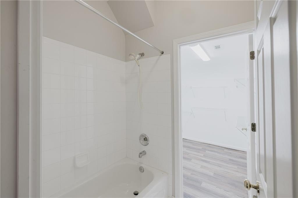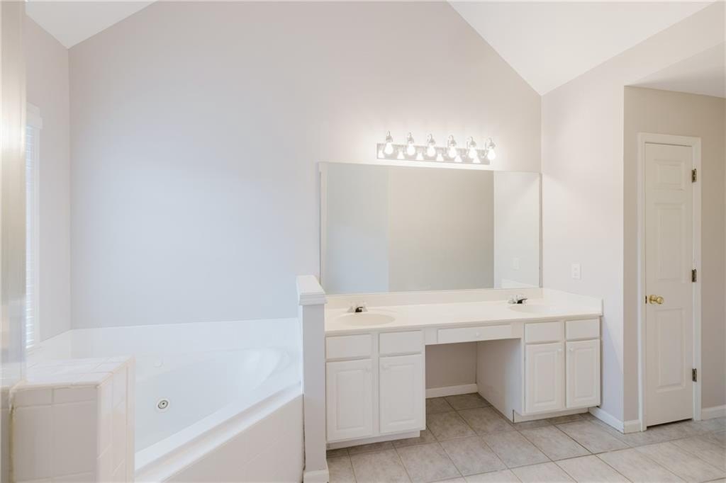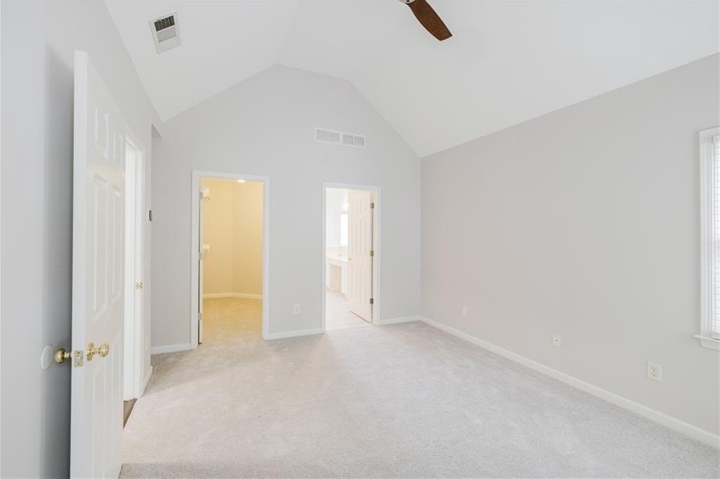 full bath and walk-in closet is also on the main floor. Upstairs includes the spacious primary suite with vaulted ceiling, soaking tub, separate shower, dual vanities, and walk-in closet, plus another bedroom with walk-in closet and a full laundry room. Additional highlights include brand-new carpet upstairs, two new HVAC systems, and a new roof to be installed before closing. The quaint fenced backyard provides a perfect spot for easy outdoor living. Neighborhood amenities
