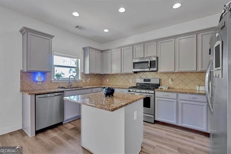 Step onto the inviting "rocking chair style" front porch of this beautifully upgraded two-story Craftsman, featuring timeless stone and frame accents and a generous unfinished basement for future growth. New flooring on the main level and it's open concept set a warm, welcoming tone throughout. Complemented by a separate dining room area—perfect for entertaining or family gatherings. The open-concept kitchen seamlessly connects to the family room and showcases granite countertops, a stylish tile backsplash, and stainless steel appliances, while the family room itself shines with a new accent wall and abundant natural light.
