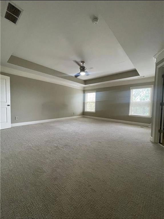 A convenient powder room is located on the main level. Upstairs, the private owner's suite impresses with tray ceilings, a spacious en-suite bath with granite counters, tile flooring, a separate tile shower, deep soaking tub, and dual closets—including a walk-in with custom built-ins. Three additional roomy bedrooms and a well-appointed hall bath offer space for every need, plus a separate, private laundry room with tile flooring adds everyday convenience.