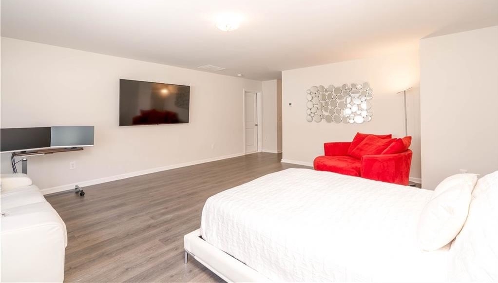 The chef’s kitchen is a standout, featuring quartz countertops, a large island perfect for entertaining, and a walk-in pantry. Each bedroom includes its own bath, providing luxury and privacy for family and guests alike. The primary suite is a retreat of its own with a spa-inspired bath and generous walk-in closet. Upstairs bedroom perfect Large bedroom or Recroom. This home offers a circulating pump that brings hot water to each water outlet quickly.