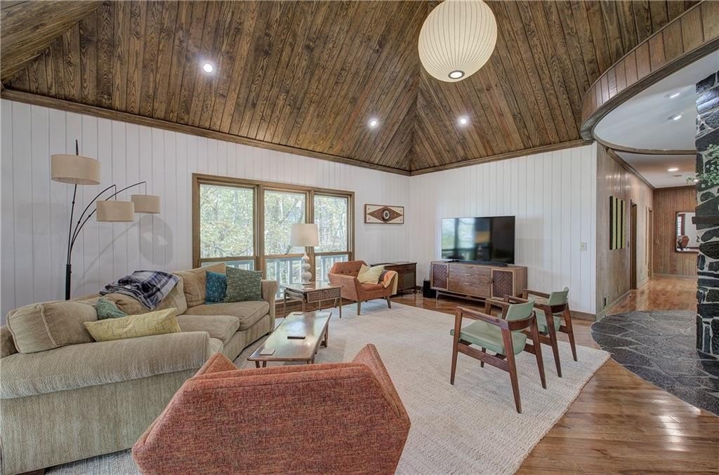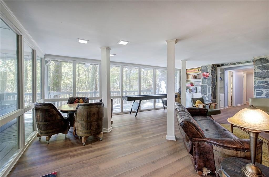 DO NOT MISS THIS Unique Southern Living Designed home meticulously maintained, updated, and furnished in a relaxed mountain-living "Mid Century Modern" vibe!! Close to the front gate of the beautiful, amenity rich community of Bent Tree in the north Georgia mountains, this home will knock your socks off with all of it's features! Entering the front door, step into the gorgeous stone 'Round" foyer and around to huge great room with a soaring wood ceiling, tongue and groove wood walls, cozy fireplace, and tons of windows letting in natural light and views. The open concept with the living room, kitchen, dining and an awesome sunroom areas are all updated with brand new windows throughout, new heat and air in the sunroom, and beautiful real wood floors. The sunroom connects to both the kitchen and great room and opens onto a deck with long range views. The kitchen is the heart of many homes and this one is no exception. Brand new custom maple wood cabinets, all new GE Cafe brand induction appliances, gorgeous stone countertops and breakfast bar make this kitchen a cook's dream and gathering place to eat and entertain. Off of the kitchen is the mudroom with new washer and dryer, a two car oversized garage, an interesting 1/2 bath with shower, and the cutest, intimate sitting room/Library with fireplace. There are two large bedrooms each with ensuite bathrooms and walk-in closets down the hall from the great room. Main floor living at it's best!! Downstairs is a finished basement with all new Luxury Vinyl throughout and central heat and air. There is a living room/game room, 2 bedrooms and a full bath. Off of the living room is a lower deck with a new hot tub! This Must See Home sits on a large 1.81 acre wooded lot, has a level easy driveway with plenty of parking space, a front stone patio, so many other updates and features not mentioned like a whole house generator and a separate "out building" for storage or golf cart. This home comes "FULLY FURNISHED!" Furnishings were painstakingly (actually the owners had a blast finding) gathered, curated, lovingly and lightly used to make this home a special place to live full or part time or perhaps a super fun short term rental.