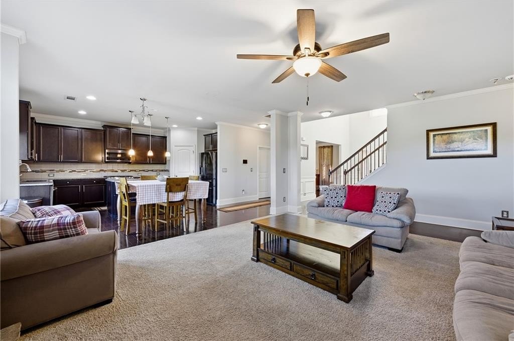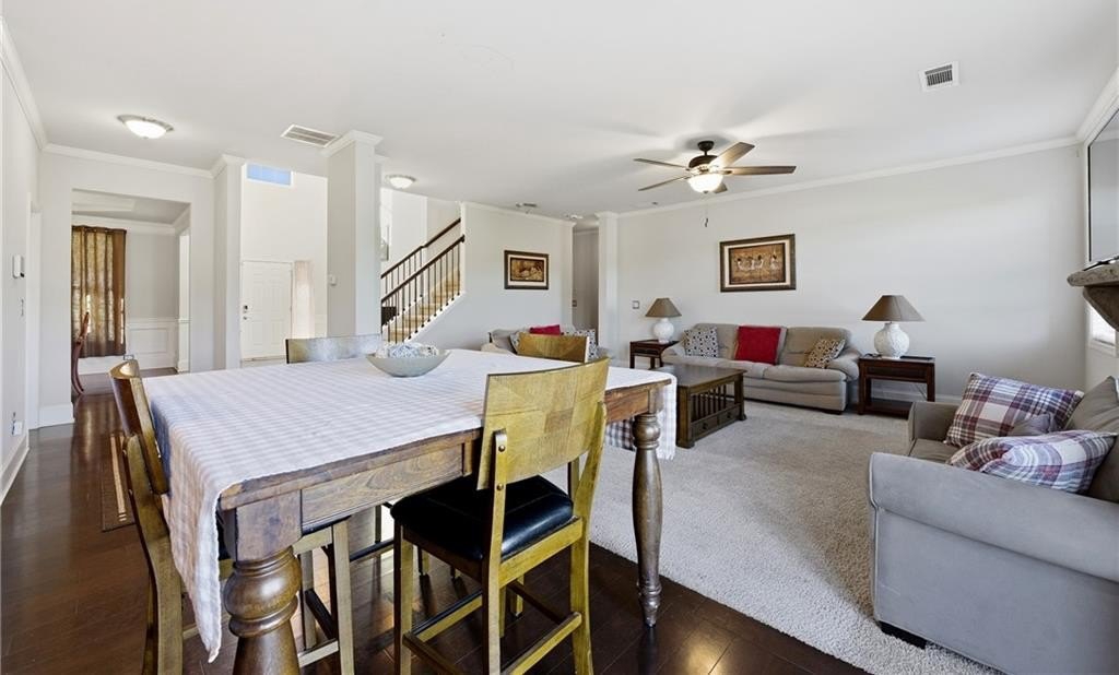 The main level boasts an open floor plan with a two story foyer, family room, beautiful dining room and eat-in kitchen that includes an island and pantry, plus a spacious guest bedroom and full bath, perfect for visitors.