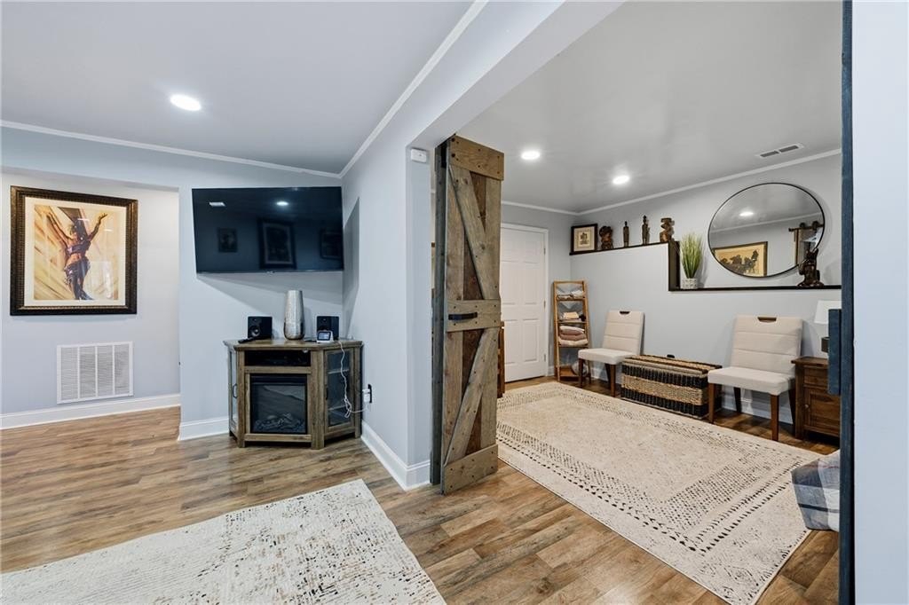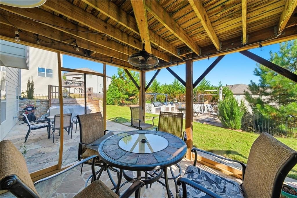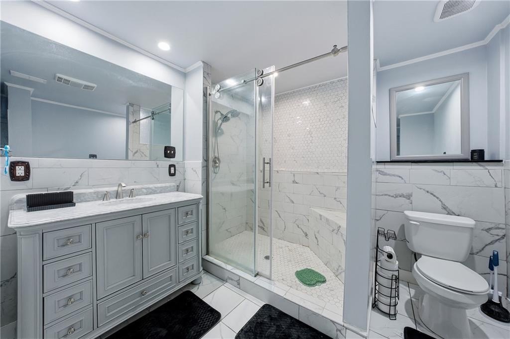 The terrace level is an entertainer’s paradise, complete with a full chef’s kitchen, a custom bar, a large living area, and two additional bedrooms and full bath with separate tub and shower, offering plenty of space for guests or in-laws.