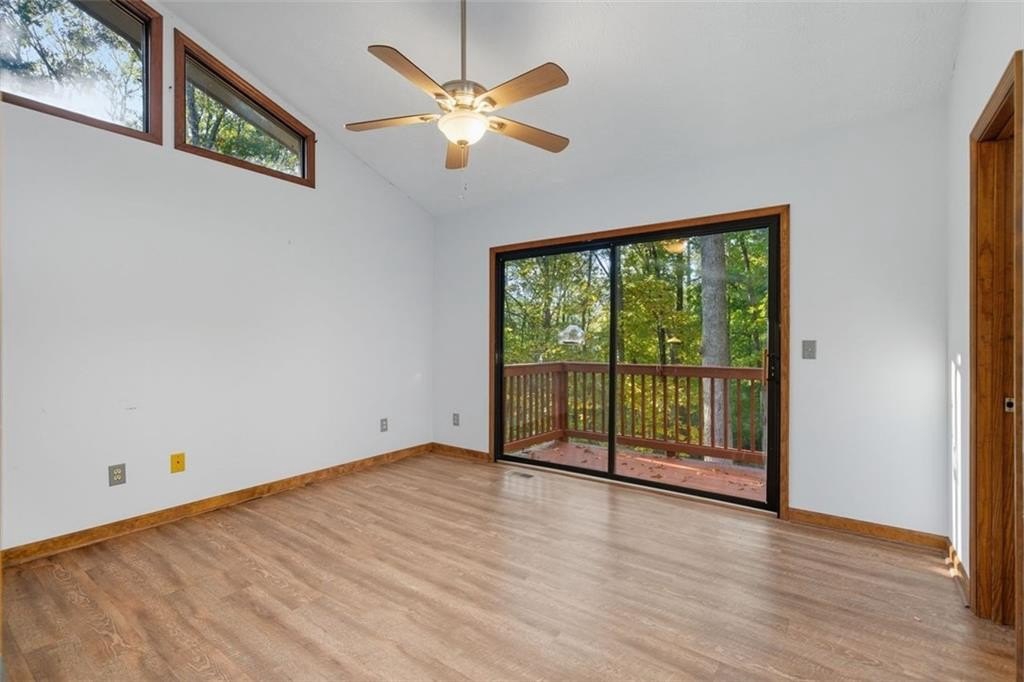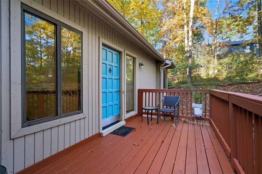 The updated kitchen features granite countertops, stainless steel appliances, and plenty of cabinet space. Both bathrooms have been tastefully renovated with modern finishes. The primary suite includes private access to a balcony and deck, providing a relaxing outdoor retreat.