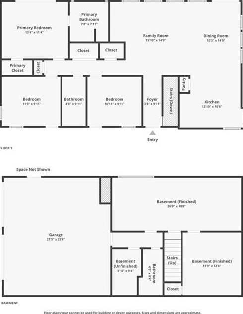 The finished basement offers flexible space that can be used as a media room, home office, gym, or guest suite.