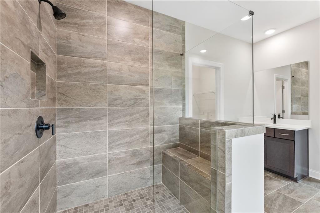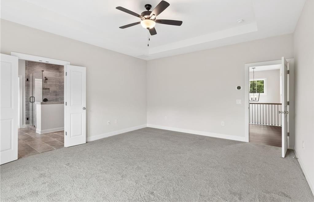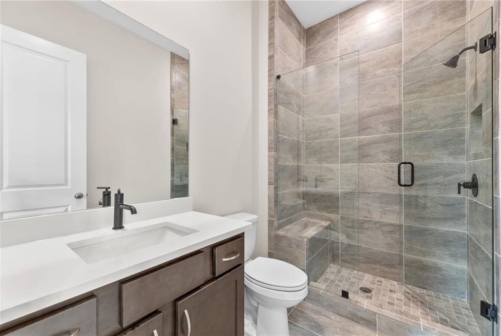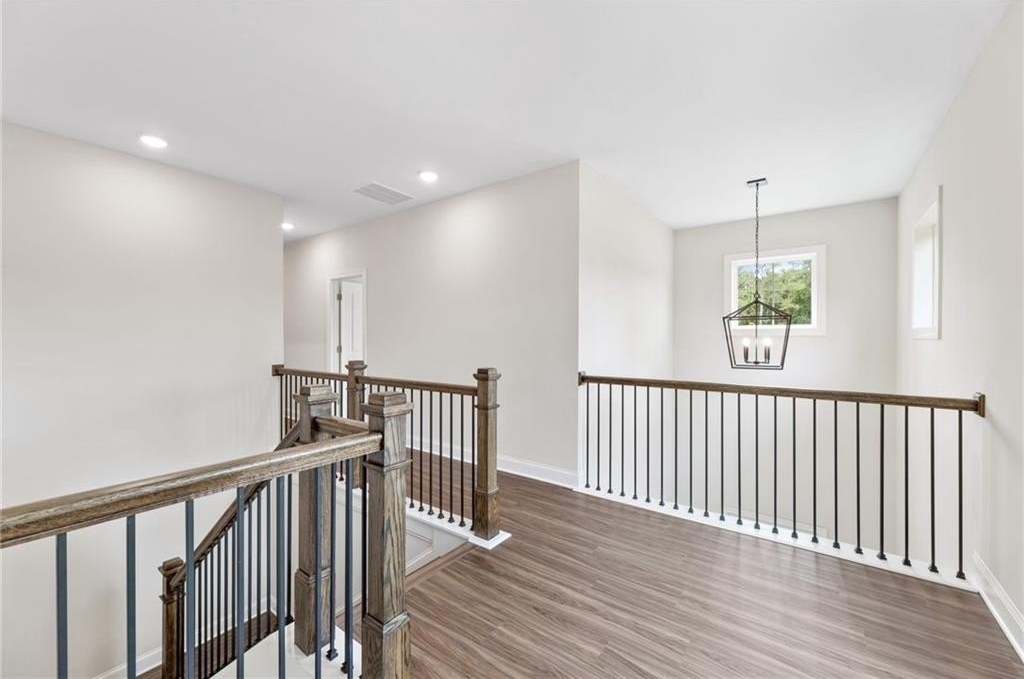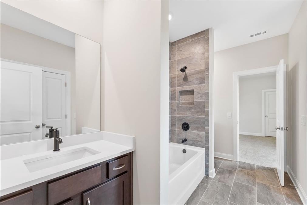 READY NOW. Windsong's Wesleyan A plan—a 5-bedroom, 4-bath home thoughtfully designed with over 3,100 sq ft of upscale comfort in Ashbury Commons, a boutique West Cobb community. Step inside and be welcomed by warm Cinnamon Walnut flooring, rich Charcoal cabinetry, and a dramatic stacked mosaic backsplash that sets the tone for the gourmet kitchen. This kitchen is made for entertaining and features Viatera White Pearl quartz countertops, matte black accents, and stainless Frigidaire Gallery appliances. A private guest suite on the main floor offers flexibility, while the upstairs primary retreat stuns with a freestanding tub, bold black fixtures, and soothing Paradise Grey tilework. Every bathroom is a showcase of designer-selected quartz, tile, and hardware—creating spa-like moments throughout.