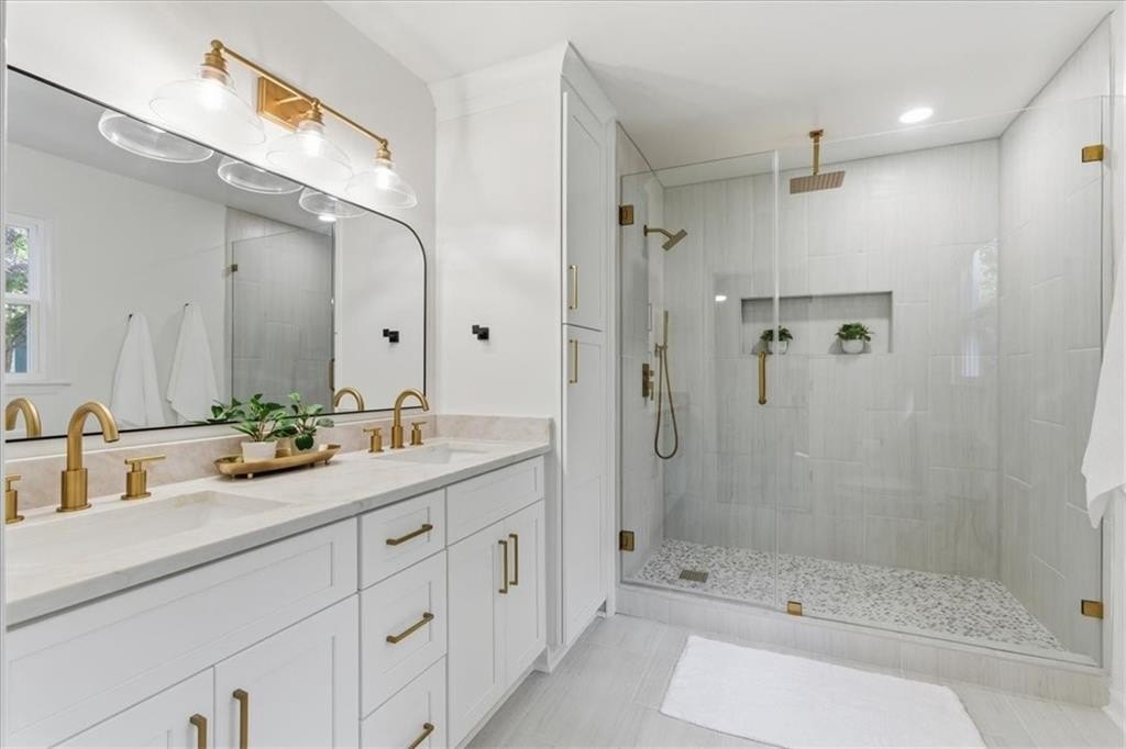 The main level offers a spacious primary suite with a luxurious ensuite bath boasting dual vanities, a beautiful large tiled shower, and quartz counters. Two additional bedrooms and a full hall bath complete the main floor. Upstairs, you’ll find another bathroom and generously sized bedroom with a huge walk-in closet—perfect as a second primary suite, fourth bedroom, or even additional living space.