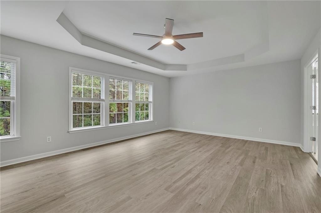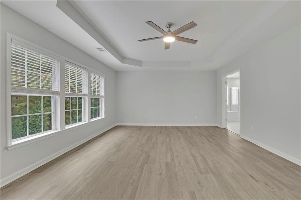 A new concrete patio off the terrace creates even more space to unwind, entertain, relax, or simply enjoy peaceful moments surrounded by nature. Level green backyard offers an ideal setting for family gatherings, a grill night, or quiet moments of reflection to sink in. Recent updates include fresh interior paint, modern light fixtures, ceiling fans, new faucets, and updated vanity lights, enhancing the home’s clean, refreshed feel. This family-friendly neighborhood also offers fantastic community amenities, which include a pool, tennis courts, a playground, and a clubhouse.