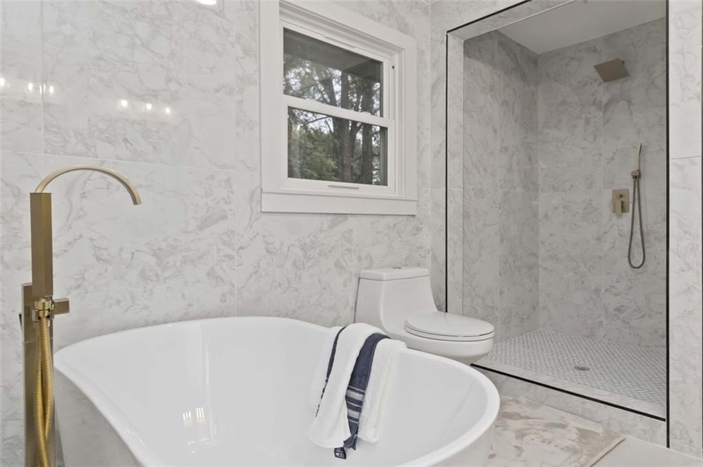 Retreat to the luxurious primary suite, complete with a walk-in closet, a spa-inspired bathroom boasting a freestanding soaking tub, and an oversized shower accented with designer finishes. Each additional bathroom has been fully updated with modern, high-quality touches.
