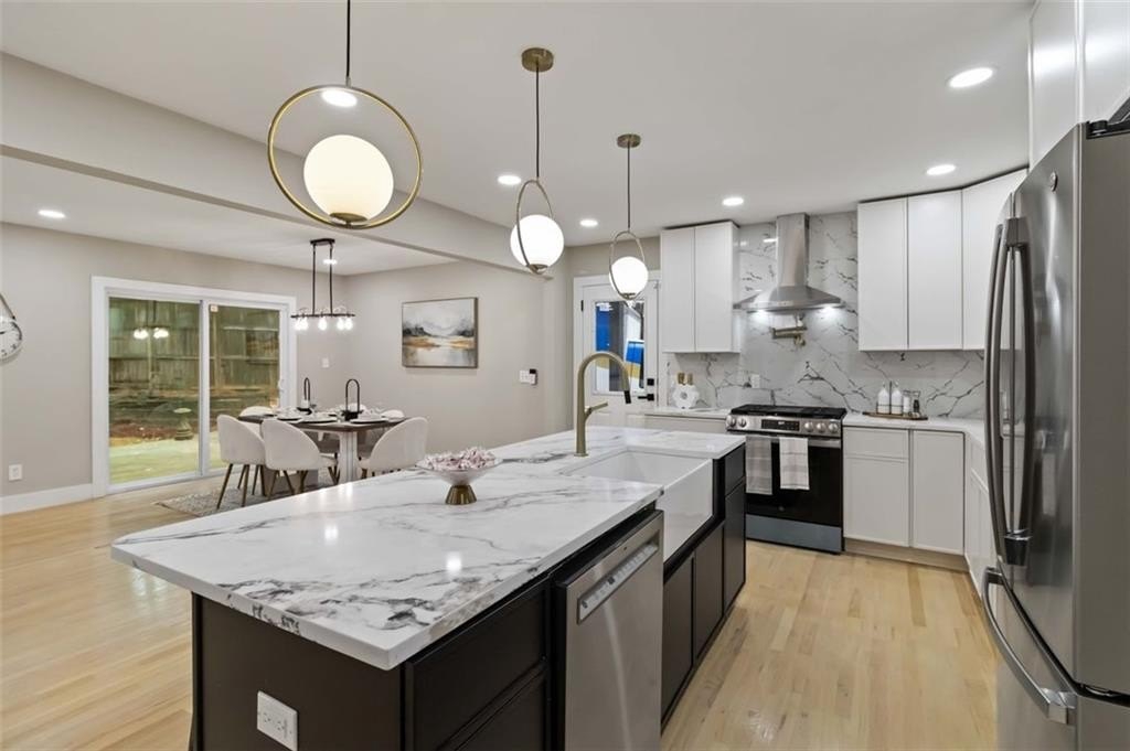 This beautifully renovated 4-bedroom, 2.5-bath brick residence spans over 2,000 square feet of refined living space. Inside, you’ll find newly refinished hardwood floors, new windows, and a bright, open layout designed for both style and function. The chef-inspired kitchen is a true showpiece, featuring an oversized island, farmhouse sink, pot filler, quartz countertops, custom cabinetry, and brand-new stainless steel appliances — perfect for both everyday living and entertaining.