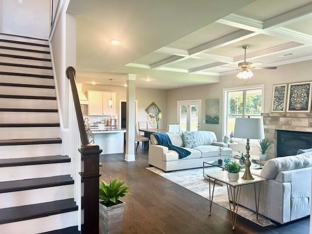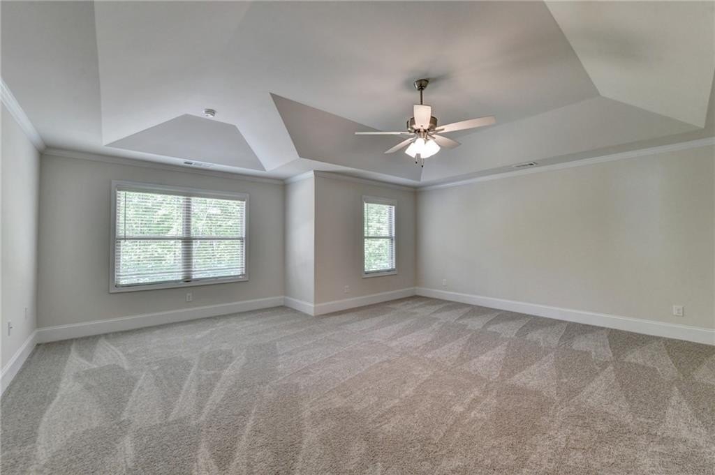 CHARLESTON Plan Lot 60B: 5BR/4BA, Stunning tranquil Home situated on HALF ACRE LOT with a 4 Car Garage. $20,000 TOWARDS CLOSING COST WHEN YOU USE THE PREFERRED LENDER. Located in the Sought after North Forsyth School District. This BRAND NEW HOME is Located in the Gated community of Sierra Lake with Great Shopping, Parks and Schools. This Lot is Level in the Front and back. The Main Level Features a 2-Story Foyer, Formal Coffered Dining Room, Study/Flex Space, Large Bedroom on the Main with Spacious Walk-In Closet and Full Bath. Gourmet Kitchen with 42" Cabinets, and Island, Huge Walk in Pantry, Wall Oven, Apron gas cooktop, vented microwave, Dishwasher, one Continuous Stainless-Steel Sink with Disposal, Island with lots of Seating, and Tile Backsplash. The main level has Wood and the Wood Staircase lead you to a Wonderful Media Room and 4 bedrooms. 2 Bedrooms share a Jack and Jill Bathroom, One Bedroom with Ensuite Bath. The Master Bath alone Deserves Special Mention, this Space Includes Comfort-Height Double Sink Vanity, Oversized Walk-in Shower, Separate Soaking Tub, Linen Closet, and Private Water Closet. You will Love to Enjoy Your Coffee on the Covered Back Deck Home Nestled in a quiet lake community that offers resort style amenities including a fishing dock, walking trails, playground, pool, clubhouse, pavilion, fire pit area, gaming area, and Play field. Quick access to GA 400- little over 2 miles. Minutes to Lake Lanier. GATED COMMUNITY - Gates close at 6:30PM. Decorated Model Home open daily. File photos
