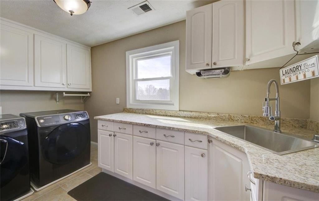 Upstairs includes four oversized bedrooms, including a large owners suite with a fully renovated spa-style bathroom featuring a soaking tub and upgraded finishes. The second-floor laundry room has also been updated and includes granite folding countertops.