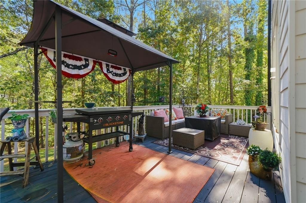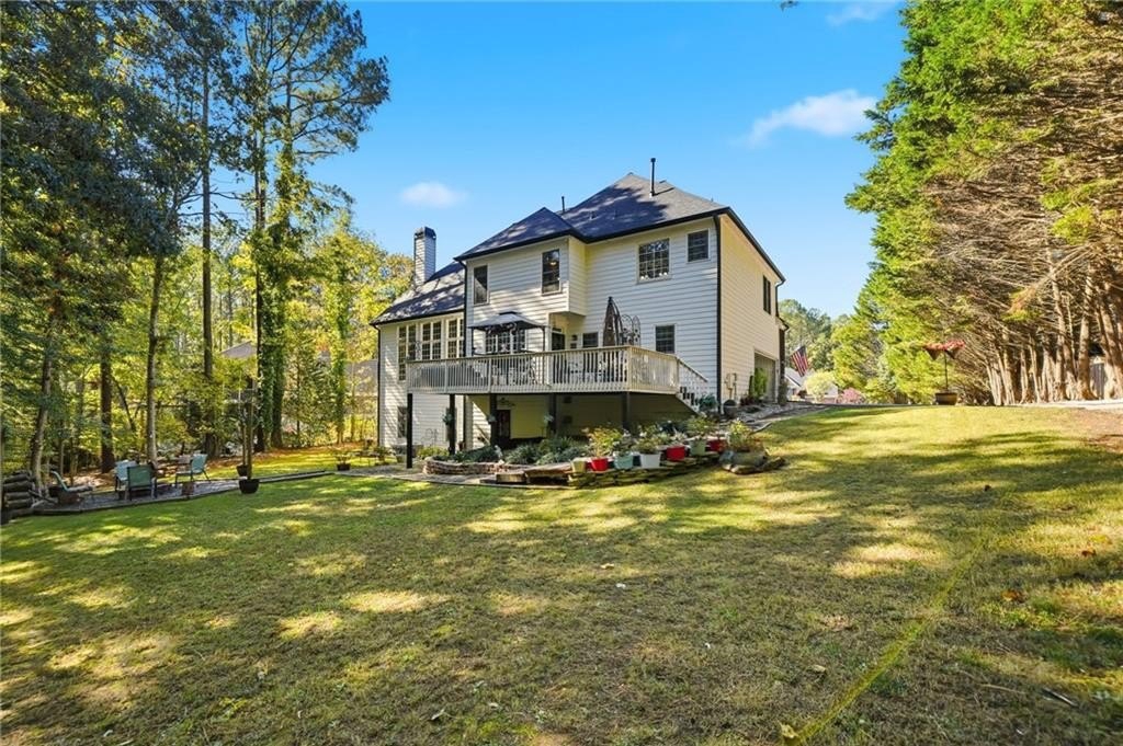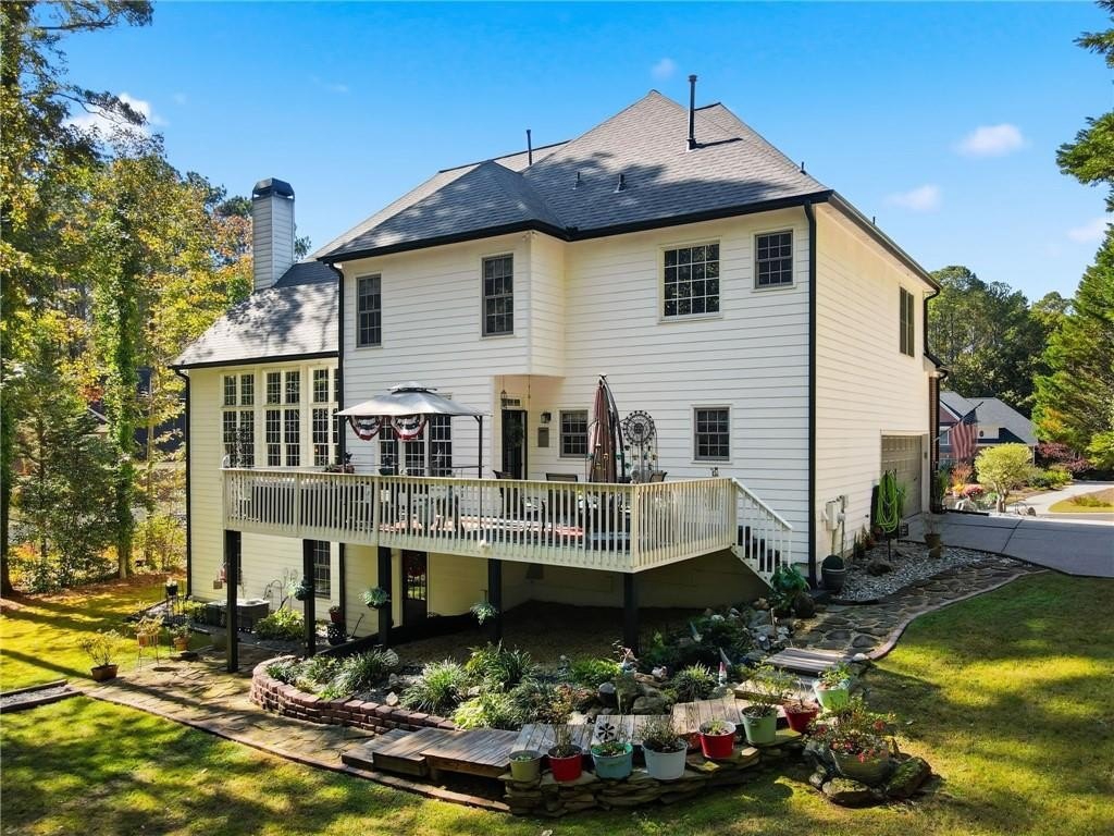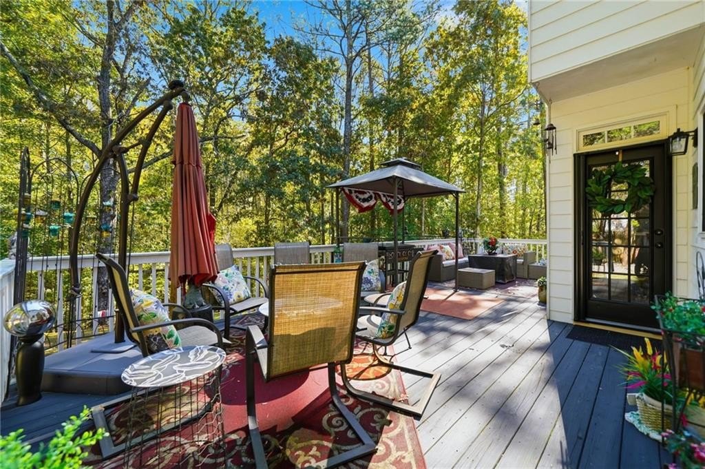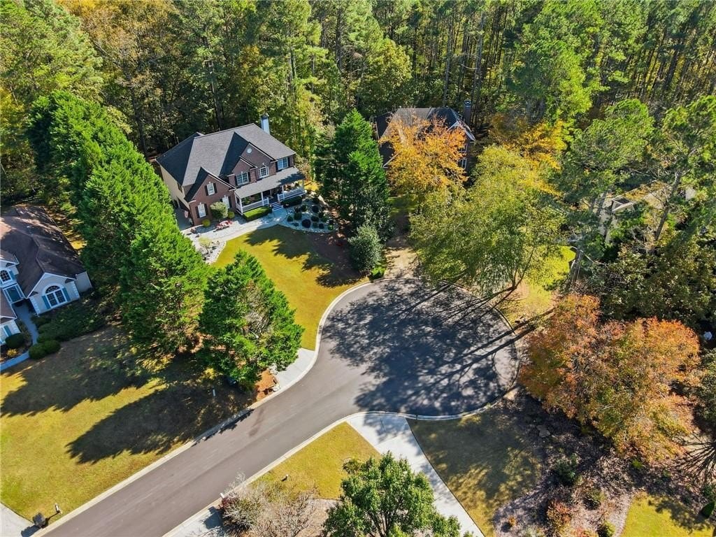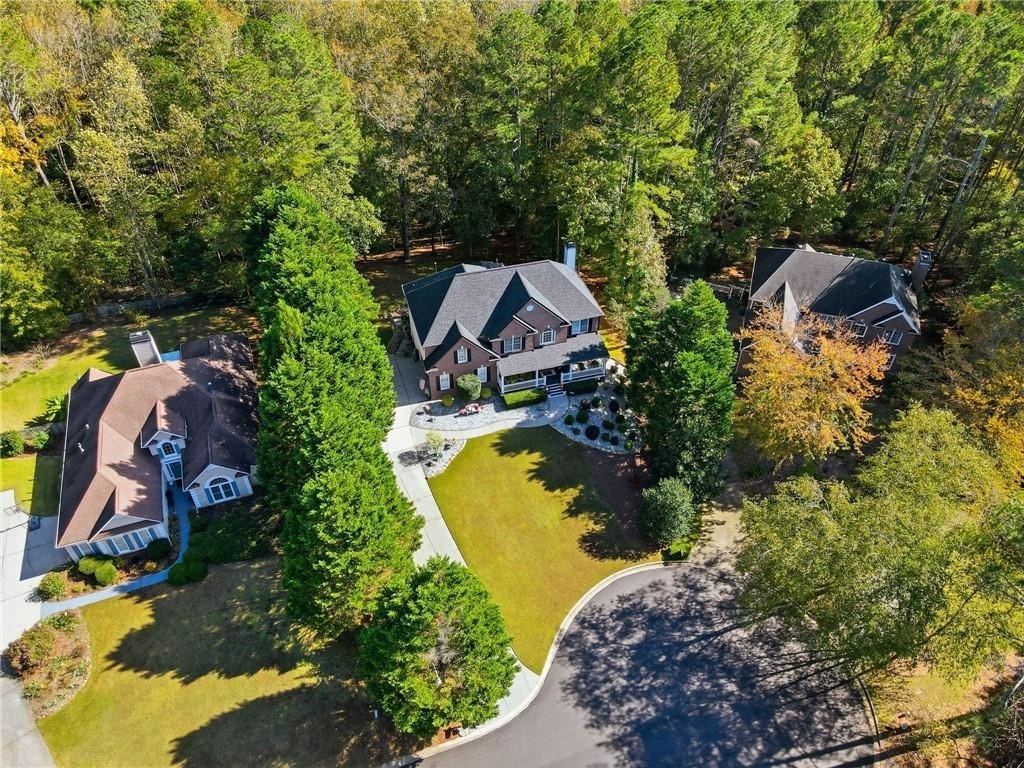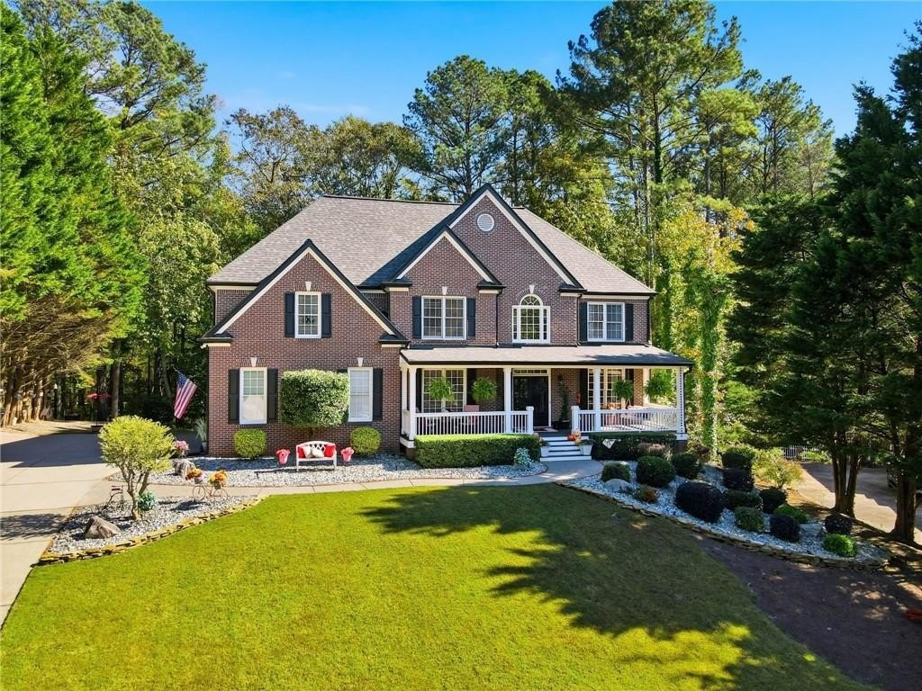Located in the top ranked school district of Cherokee County, discover unparalleled living in this magnificent home where classic elegance and style seamlessly meet. Situated on a meticulously landscaped cul-de-sac lot, this well maintained residence sits within a community of tree-lined streets offering a sophisticated yet inviting ambiance designed for both grand entertaining and intimate family life. Double French doors greet you as you approach the large covered front porch. As you enter through the two-story foyer flanked by a spacious study and separate dining room you will immediately appreciate the beautifully finished hardwood floors throughout the entire main level. Entertain and move around effortlessly within the well-appointed kitchen which includes double-ovens for the family chef, granite counter-tops and plenty of cabinet space. Never lose sight of your family and guests while you entertain. Grab a book and cozy-up next to the wood burning fireplace, or watch your favorite game in the two- story living room overlooking the wooded private backyard. Upstairs you will appreciate the generous sized Master Suite that can easily accommodate your wardrobe furniture and a king-sized bed. In the Master Bath unwind and relax in the huge walk-in glass shower, separate tub and walk in closet. Additionally, you will find 3 other spacious bedrooms, one with its own ensuite bathroom and two others that share a Jack-n-Jill bathroom with double vanities. The terrace level daylight basement with access to the backyard is fully finished with its own separate kitchen, living area, additional bedroom, bathroom and plenty of storage. If you love to garden, you're in luck as well with plenty of backyard space. This Orange Shoals Swim and Tennis community also has it's on walking trails that spans roughly 5 miles. Once you arrive you may never want to leave !