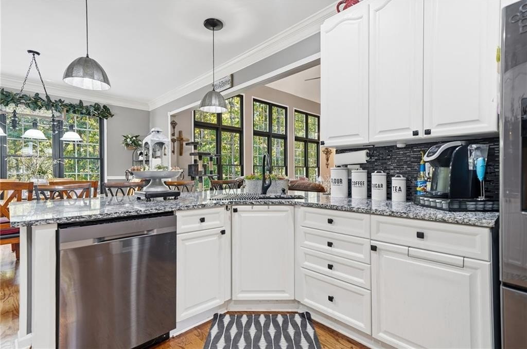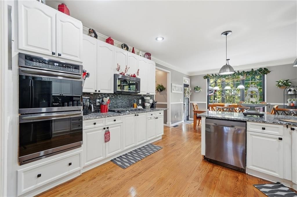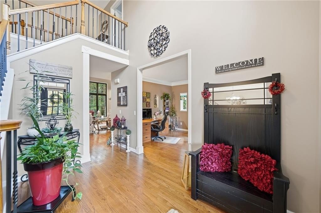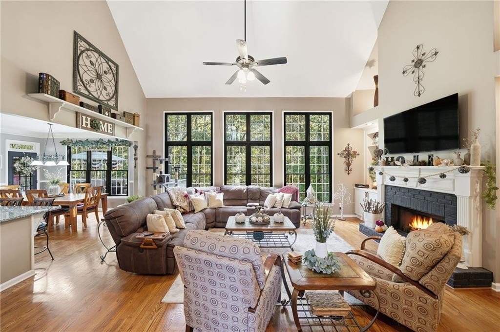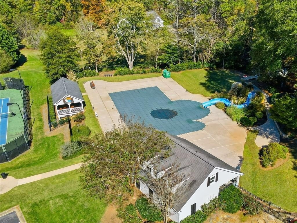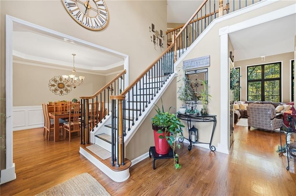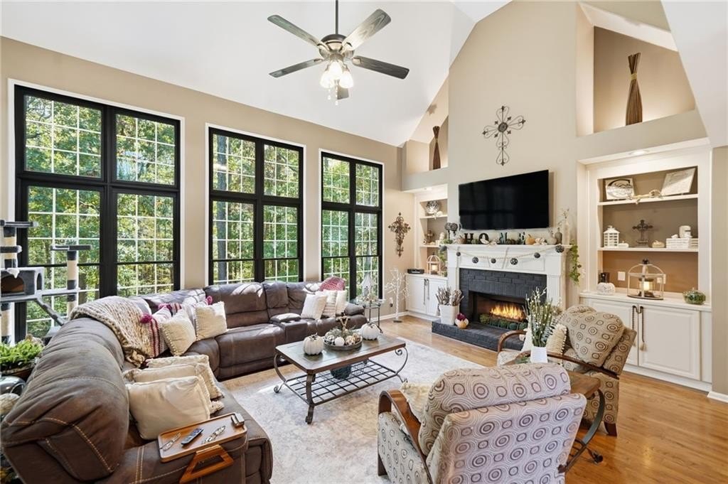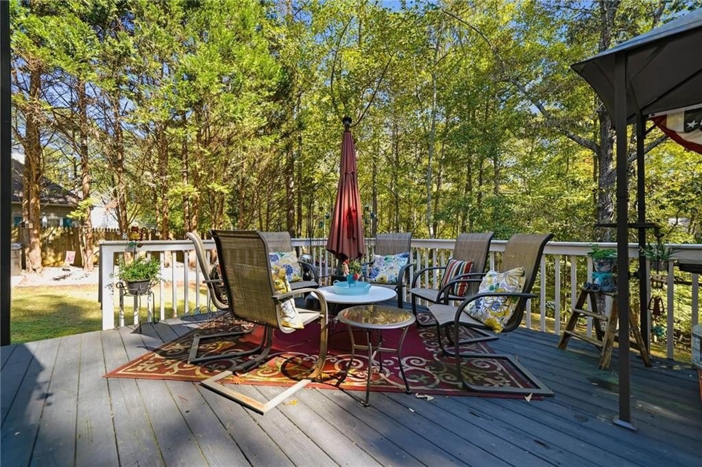 Located in the top ranked school district of Cherokee County, discover unparalleled living in this magnificent home where classic elegance and style seamlessly meet. Situated on a meticulously landscaped cul-de-sac lot, this well maintained residence sits within a community of tree-lined streets offering a sophisticated yet inviting ambiance designed for both grand entertaining and intimate family life. Double French doors greet you as you approach the large covered front porch. As you enter through the two-story foyer flanked by a spacious study and separate dining room you will immediately appreciate the beautifully finished hardwood floors throughout the entire main level. Entertain and move around effortlessly within the well-appointed kitchen which includes double-ovens for the family chef, granite counter-tops and plenty of cabinet space. Never lose sight of your family and guests while you entertain. Grab a book and cozy-up next to the wood burning fireplace, or watch your favorite game in the two- story living room overlooking the wooded private backyard. Upstairs you will appreciate the generous sized Master Suite that can easily accommodate your wardrobe furniture and a king-sized bed. In the Master Bath unwind and relax in the huge walk-in glass shower, separate tub and walk in closet. Additionally, you will find 3 other spacious bedrooms, one with its own ensuite bathroom and two others that share a Jack-n-Jill bathroom with double vanities. The terrace level daylight basement with access to the backyard is fully finished with its own separate kitchen, living area, additional bedroom, bathroom and plenty of storage. If you love to garden, you're in luck as well with plenty of backyard space. This Orange Shoals Swim and Tennis community also has it's on walking trails that spans roughly 5 miles. Once you arrive you may never want to leave !