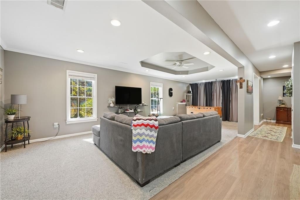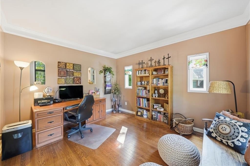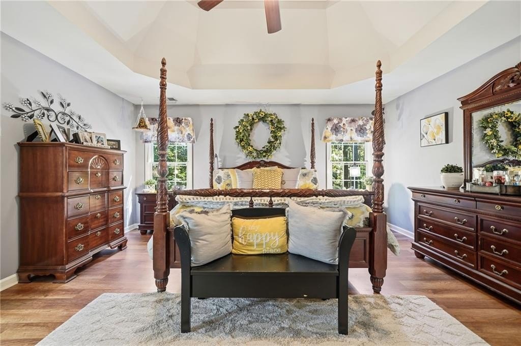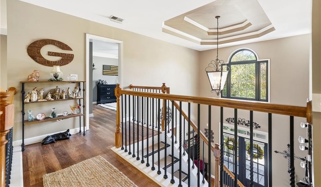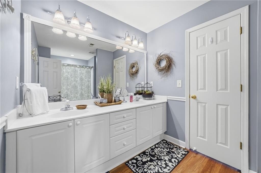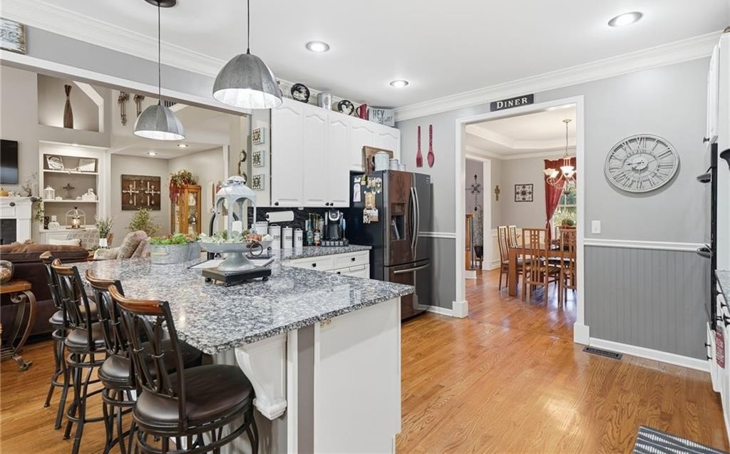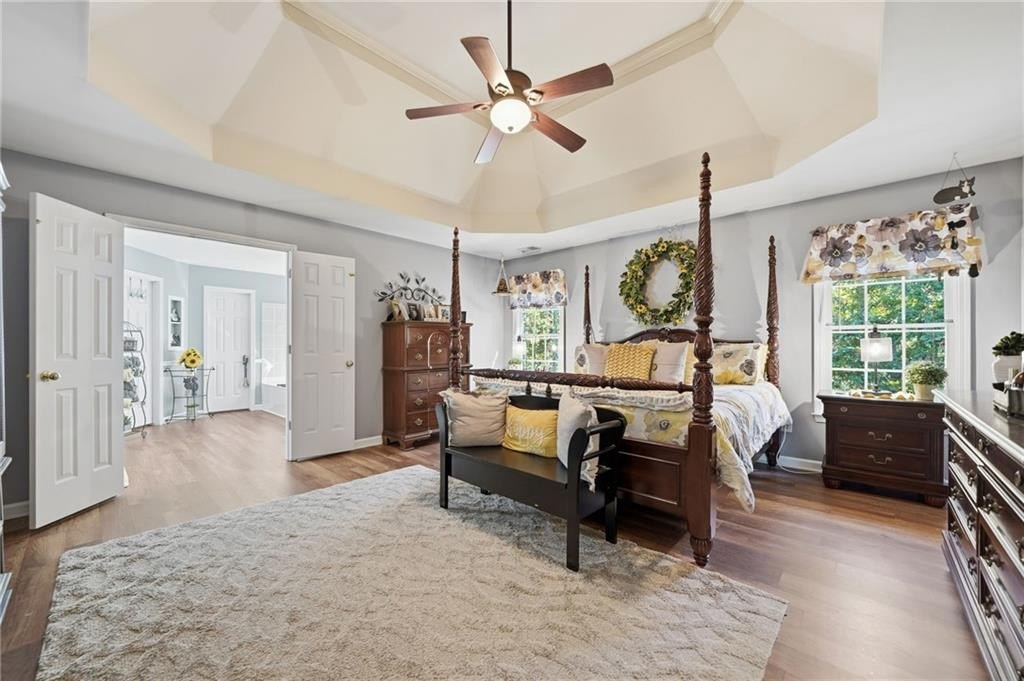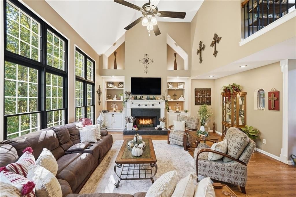 Located in the top ranked school district of Cherokee County, discover unparalleled living in this magnificent home where classic elegance and style seamlessly meet. Situated on a meticulously landscaped cul-de-sac lot, this well maintained residence sits within a community of tree-lined streets offering a sophisticated yet inviting ambiance designed for both grand entertaining and intimate family life. Double French doors greet you as you approach the large covered front porch. As you enter through the two-story foyer flanked by a spacious study and separate dining room you will immediately appreciate the beautifully finished hardwood floors throughout the entire main level. Entertain and move around effortlessly within the well-appointed kitchen which includes double-ovens for the family chef, granite counter-tops and plenty of cabinet space. Never lose sight of your family and guests while you entertain. Grab a book and cozy-up next to the wood burning fireplace, or watch your favorite game in the two- story living room overlooking the wooded private backyard. Upstairs you will appreciate the generous sized Master Suite that can easily accommodate your wardrobe furniture and a king-sized bed. In the Master Bath unwind and relax in the huge walk-in glass shower, separate tub and walk in closet. Additionally, you will find 3 other spacious bedrooms, one with its own ensuite bathroom and two others that share a Jack-n-Jill bathroom with double vanities. The terrace level daylight basement with access to the backyard is fully finished with its own separate kitchen, living area, additional bedroom, bathroom and plenty of storage. If you love to garden, you're in luck as well with plenty of backyard space. This Orange Shoals Swim and Tennis community also has it's on walking trails that spans roughly 5 miles. Once you arrive you may never want to leave !