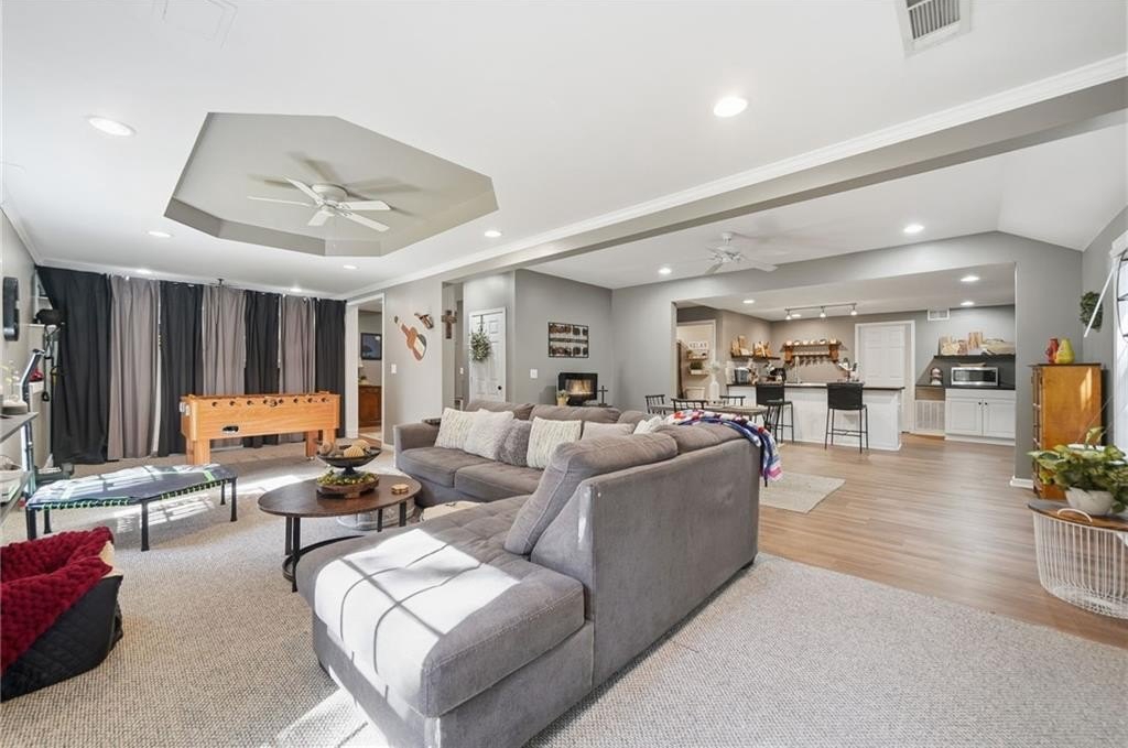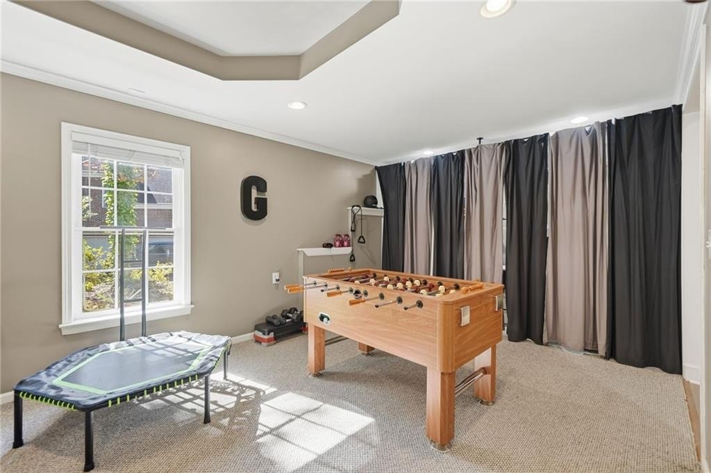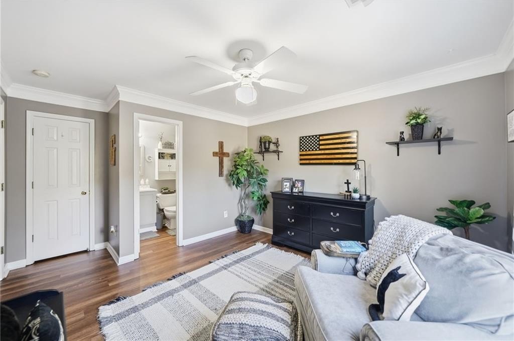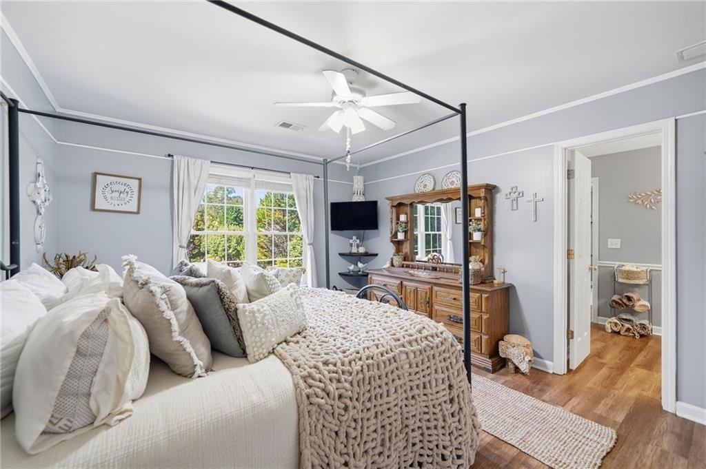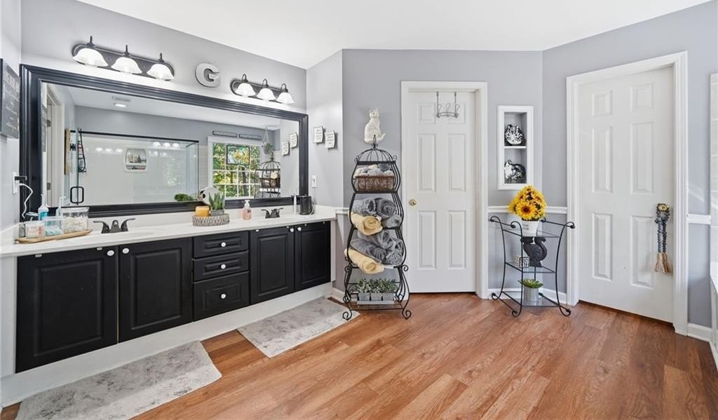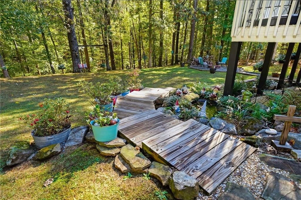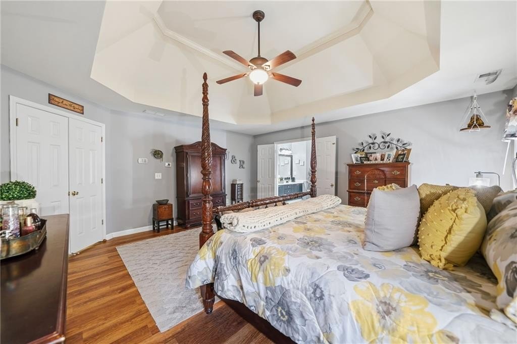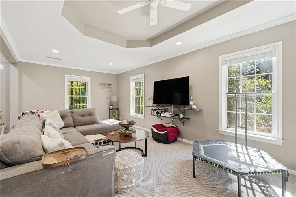 Located in the top ranked school district of Cherokee County, discover unparalleled living in this magnificent home where classic elegance and style seamlessly meet. Situated on a meticulously landscaped cul-de-sac lot, this well maintained residence sits within a community of tree-lined streets offering a sophisticated yet inviting ambiance designed for both grand entertaining and intimate family life. Double French doors greet you as you approach the large covered front porch. As you enter through the two-story foyer flanked by a spacious study and separate dining room you will immediately appreciate the beautifully finished hardwood floors throughout the entire main level. Entertain and move around effortlessly within the well-appointed kitchen which includes double-ovens for the family chef, granite counter-tops and plenty of cabinet space. Never lose sight of your family and guests while you entertain. Grab a book and cozy-up next to the wood burning fireplace, or watch your favorite game in the two- story living room overlooking the wooded private backyard. Upstairs you will appreciate the generous sized Master Suite that can easily accommodate your wardrobe furniture and a king-sized bed. In the Master Bath unwind and relax in the huge walk-in glass shower, separate tub and walk in closet. Additionally, you will find 3 other spacious bedrooms, one with its own ensuite bathroom and two others that share a Jack-n-Jill bathroom with double vanities. The terrace level daylight basement with access to the backyard is fully finished with its own separate kitchen, living area, additional bedroom, bathroom and plenty of storage. If you love to garden, you're in luck as well with plenty of backyard space. This Orange Shoals Swim and Tennis community also has it's on walking trails that spans roughly 5 miles. Once you arrive you may never want to leave !