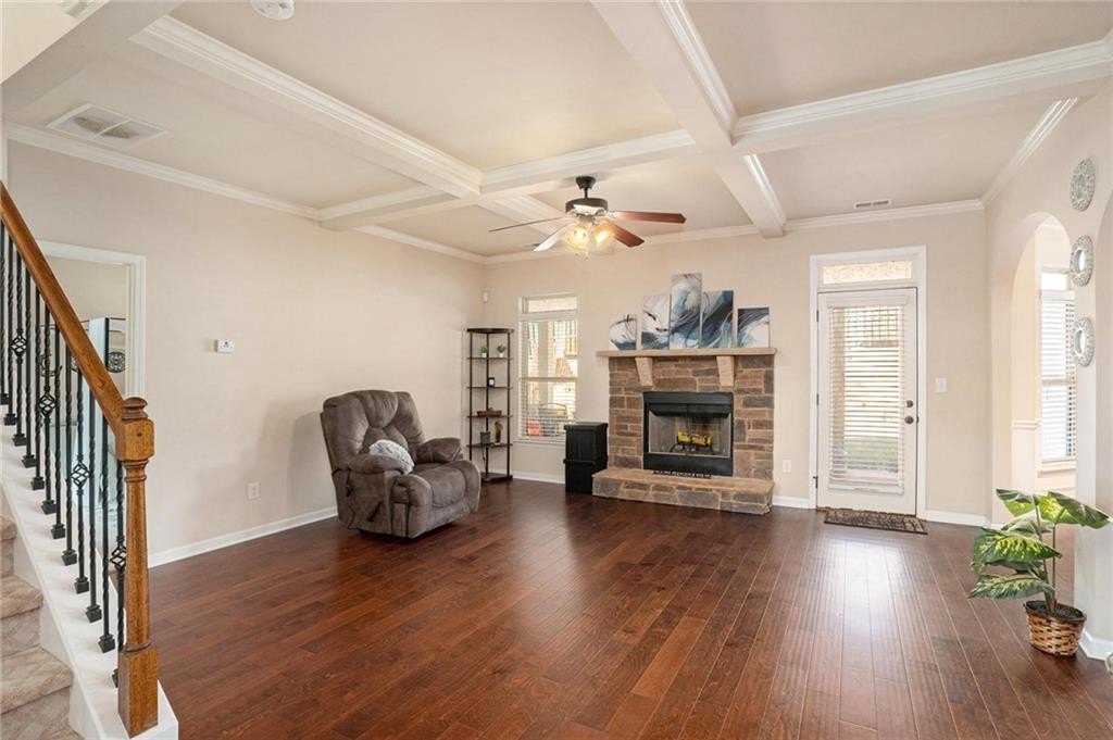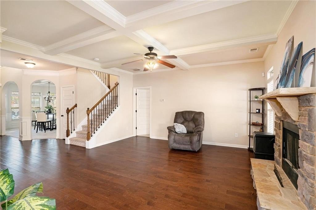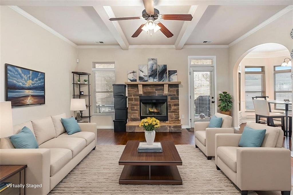 Welcome to this elegant and spacious home in McDonough! A stunning residence that perfectly blends comfort, style, and functionality. This beautiful home offers 4 bedrooms and 3 bathrooms, thoughtfully designed to accommodate both everyday living and entertaining with ease. Step inside to an inviting living space filled with natural light, featuring a family room with a cozy fireplace and a wall of Palladium windows that brings the outdoors in. The formal dining room is perfect for hosting memorable gatherings, while the modern kitchen provides granite countertops, stainless steel appliances, walk-in pantry and ample cabinetry for all your culinary adventures. Upstairs, the primary suite is a true retreat, boasting a luxurious bathroom and generous closet space. Secondary bedrooms are spacious and bright, ideal for family, guests, or a home office with a hall bath to share. Outside, enjoy a beautifully landscaped yard, perfect for outdoor activities and weekend entertaining. Located in a friendly McDonough neighborhood, this home is close to schools, shopping, great dining options, and major commuting routes. Don’t miss the chance to make 852 Nevis Way your new home where elegance and comfort meet! Schedule your showing today!