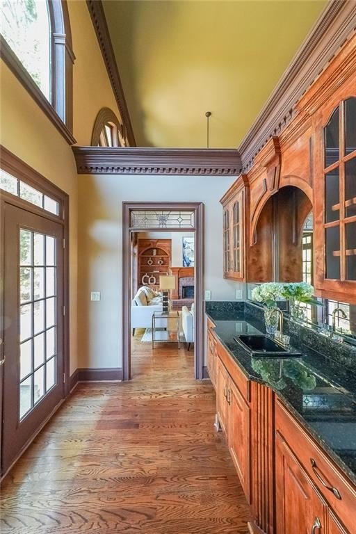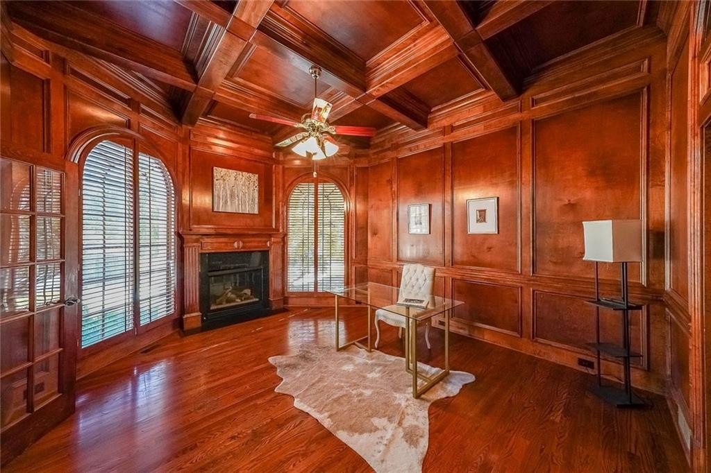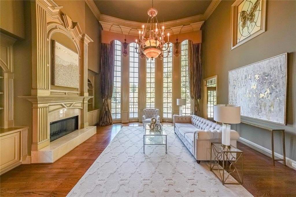 Magnificent four sides brick home with sweeping golf course views in prestigious Sugarloaf Country Club, a guard gated community. This estate home sits on one of the best lots in the community ... it is a premium golf course lot with sweeping views of the 3rd green and fairway, plus it is just under one acre and is set on a cul-de-sac near the gates. The home makes a grand first impression with its circular driveway that also provides plenty of parking. The grandness continues to the interior with a two story foyer graced by a circular staircase, gorgeous chandelier, a dramatic domed ceiling with inset lighting, and beautiful craftsmanship in the trim detail. The banquet-sized dining room and a generously sized fully paneled gentleman’s study (with fireplace and built-in bookcases) flank the foyer. Straight ahead through the foyer is the elegantly appointed two story great room with its fireplace, another stunning chandelier, built-in bookcases, and views to the backyard and golf course. The gourmet kitchen is the heart of the floor plan with adjoining octagonal breakfast room, large walk-in pantry, and vaulted keeping room with fireplace and built-ins. The luxurious master suite is spacious and well-appointed with fireplace and his-n-hers closets. Upstairs is a second full master bedroom with the fifth fireplace, plus three additional large bedrooms with ensuite bathrooms and walk-in closets, and also a charming and unique octagonal office area. The terrace is finished with an entertaining bar, poker room, billiards room with the 6th fireplace, media room, and full bathroom and bathroom, plus there is TONS of room for storage. The home is in a great location in the neighborhood, on a cul-de-sac street near the gates with great golf views.