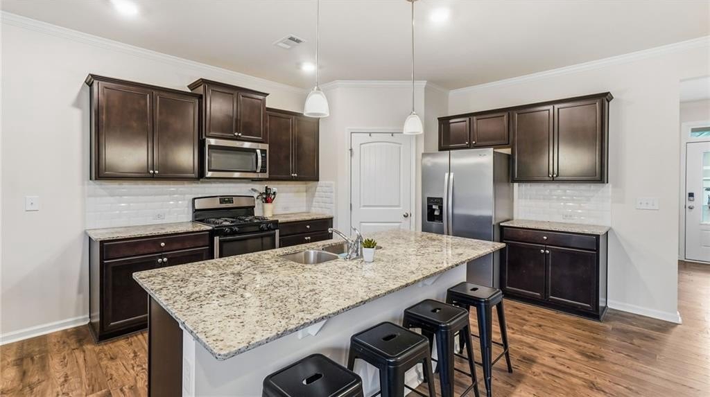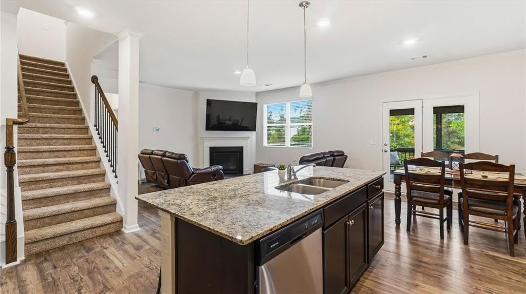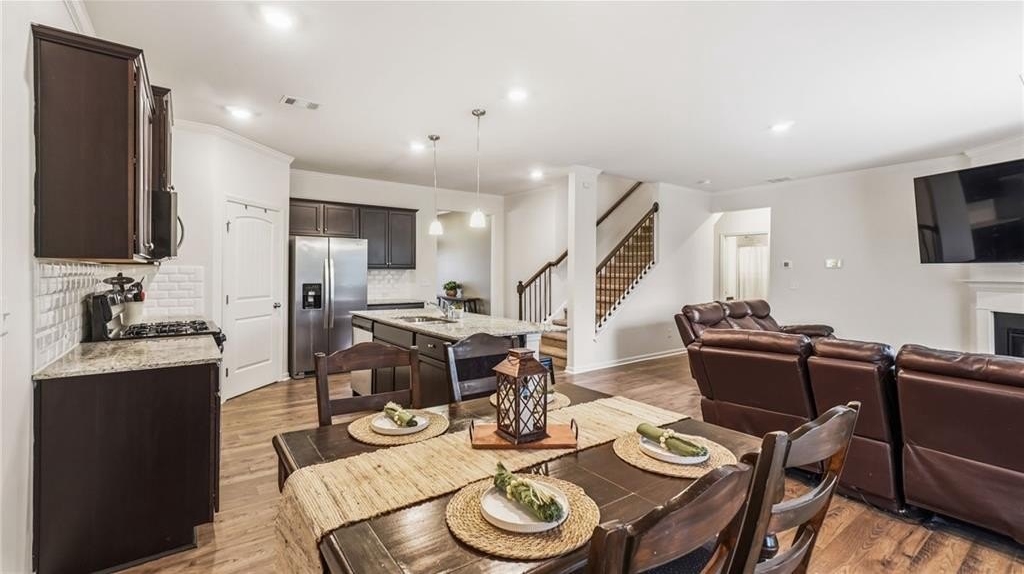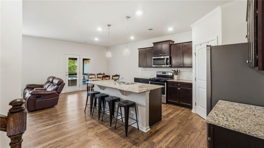 *** For Neighborhood Spotlight Video... go to Youtube and type in: 99% Don't Know About This Flowery Branch Neighborhood *** Welcome to this beautifully maintained 5-bedroom, 3-bath home offering the perfect blend of comfort, function, and style. Step inside to find an updated formal dining room and an open-concept layout that’s ideal for entertaining. The main level bedroom and full bath are perfect for guests or multigenerational living. The kitchen is a showstopper—featuring a large island, ample cabinet space, and open sight-lines into the living area. Just off the main living space, enjoy your morning coffee on the screened-in back porch overlooking the lake—a serene spot for relaxing any time of day. Upstairs, you’ll find four spacious bedrooms and a flex room, ideal for a home office, playroom, or workout space. The primary suite is oversized and includes a luxurious en suite bath with double vanities, a large walk-in shower, separate soaking tub, and a walk-in closet. The unfinished basement is already stubbed for a bathroom and ready for your personal touch—perfect for adding a bedroom, recreation room, or guest suite. From the basement, step out into the fenced-in, level backyard, ideal for kids or pets, with a gate leading directly to the lake. Other highlights include a large two-car garage, level driveway with extra parking space, and a vibrant community featuring sidewalks, a pool, playground, fire pit, and clubhouse. This home truly has it all—space, updates, and access to incredible neighborhood amenities—all in a peaceful lakeside setting.