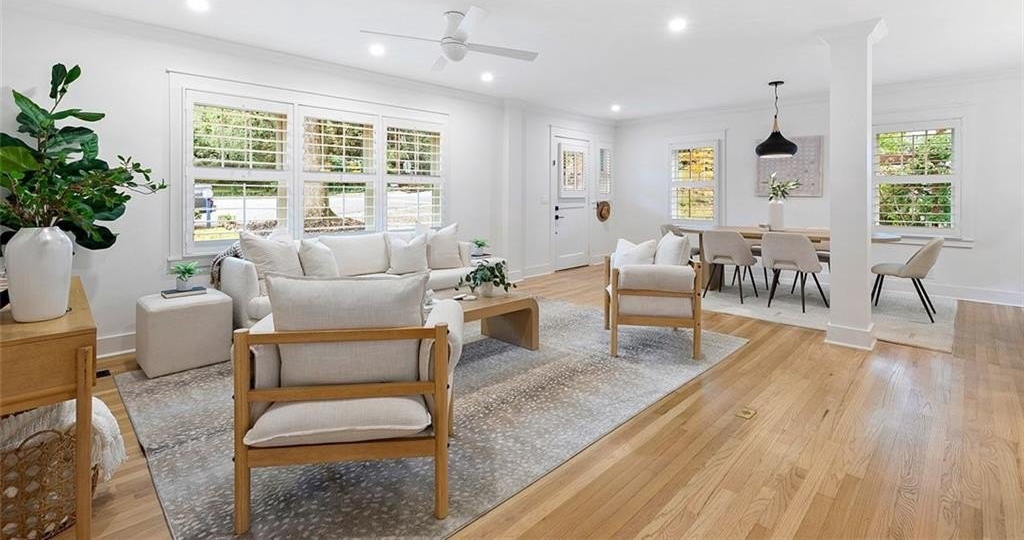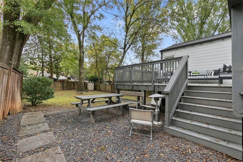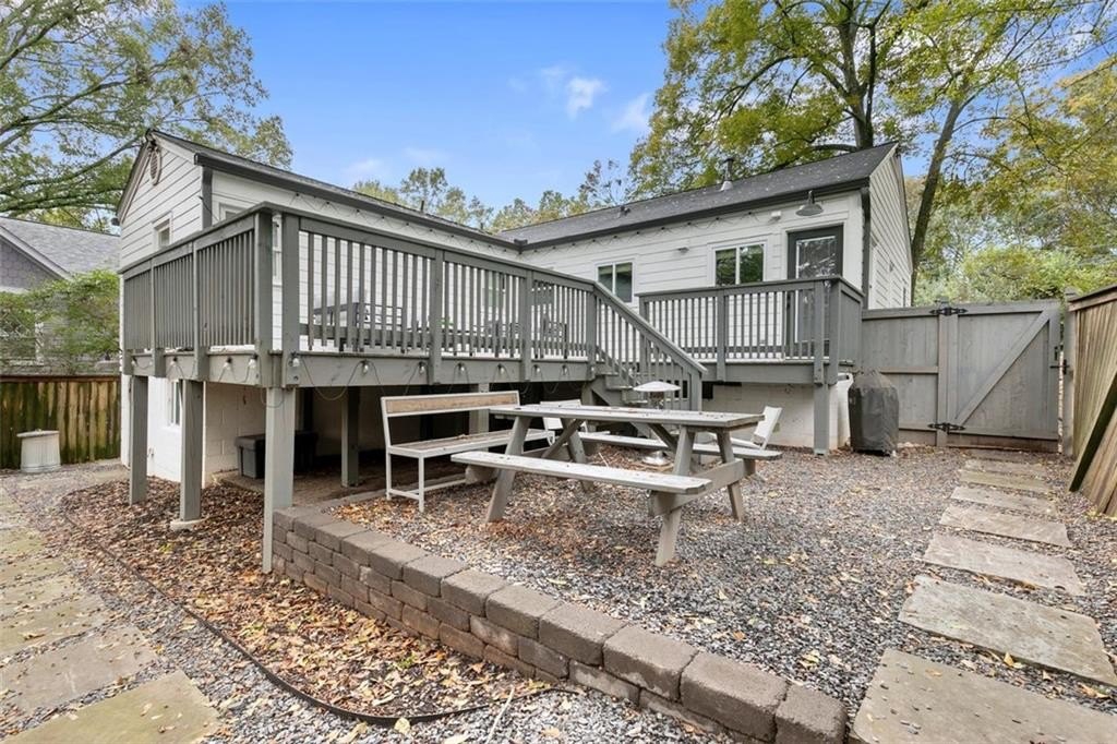 Welcome to this charming Oakhurst cottage — bright, inviting, and full of modern updates. Natural light fills the home through beautiful windows, highlighting the refinished hardwood floors and the effortless open flow from the kitchen to the dining area, spacious deck, and large backyard — perfect for entertaining friends or relaxing around a firepit.