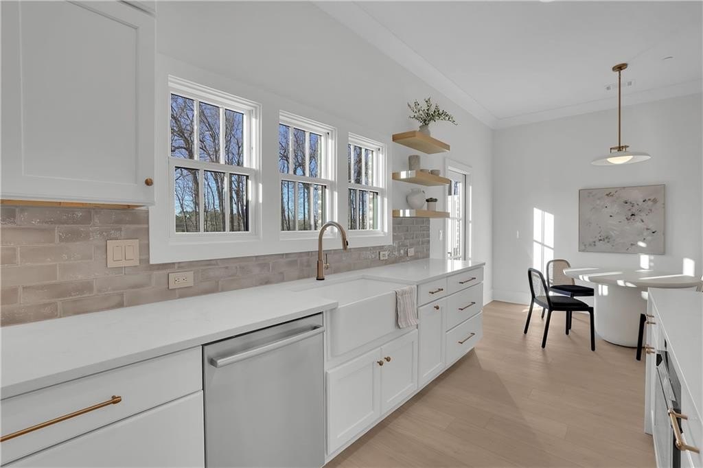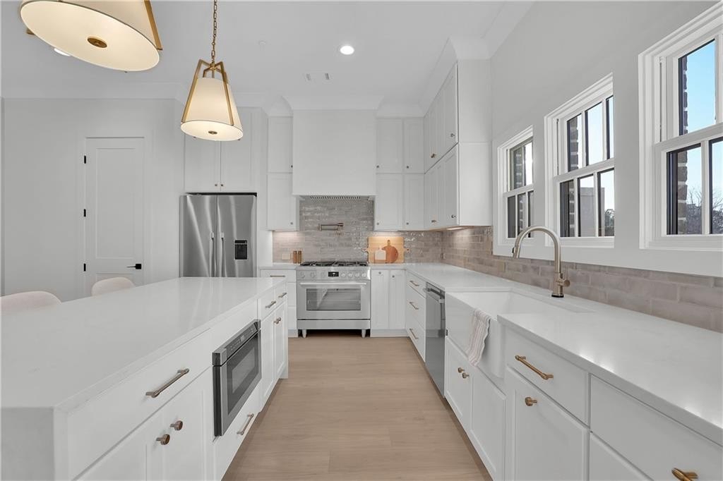 Discover the perfect fusion of luxury and leisure at Skyview on Broad, nestled in the heart of Downtown Sugar Hill. Kittle Homes,a 2 time Obie award recipient proudly presents a stunning new collection of three-story luxury townhomes, thoughtfully designed to complement your lifestyle. Entertain with ease in this expansive floorplan. Kitchen features sleek hood vented to the exterior, quartz countertops, designer backsplash, apron front sink and Bosch Appliances. Kitchen access to private deck from kitchen area. This open floorplan has an open-concept dining area and fireside family room with linear fireplace and tiles to ceiling for that transitional look that is perfect for everyday use or for entertaining. Owner's ensuite features freestanding tub, separate shower with frameless shower door with tiles to the ceiling, and double vanity. Two feature walls add class and charm to the home. The all-brick exteriors throughout the community evoke a sense of timeless luxury that will make anyone proud to call this home. Gas lanterns grace your front door to add charm and chic! Don’t miss this opportunity to be part of one of Sugar Hill’s most luxurious new construction communities where modern living meets hometown charm. Just outside your door, immerse yourself in the dynamic yet charming atmosphere of Sugar Hill’s walkable Downtown. Explore an array of shops, restaurants, and entertainment options, all within reach. Year-round festivals and community celebrations bring the neighborhood to life, making it a welcoming and vibrant place for all ages. A community Dog Park is there for your pooch to run around and enjoy outdoors. PICTURES ARE NOT INDICATIVE OF THE FLOORPLAN, BUT ARE REPRESNTATIVE OF FINISHES. PICTURES ARE OF A DIFFERENT FLOORPLAN. Unfinished pictures are of actual plan. Projected completion date late FALL 2025.