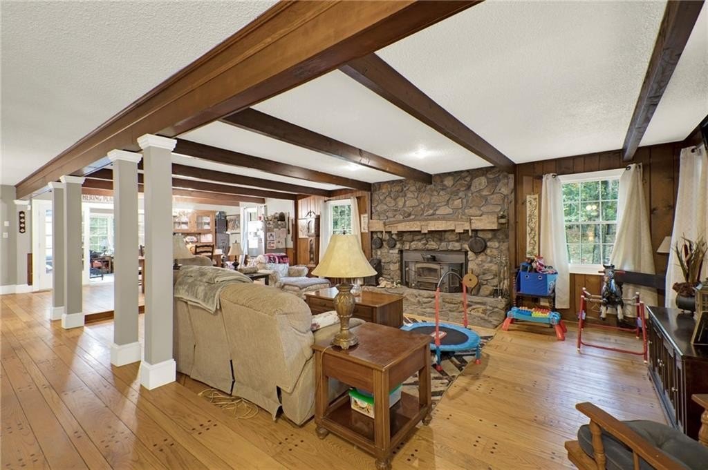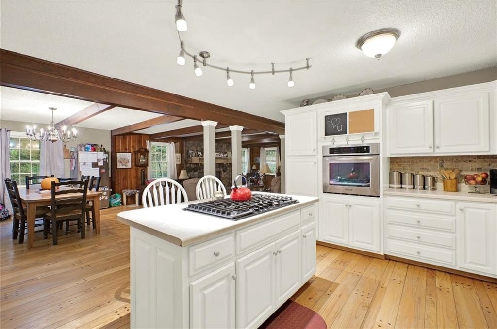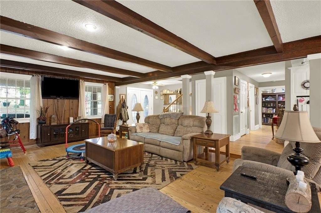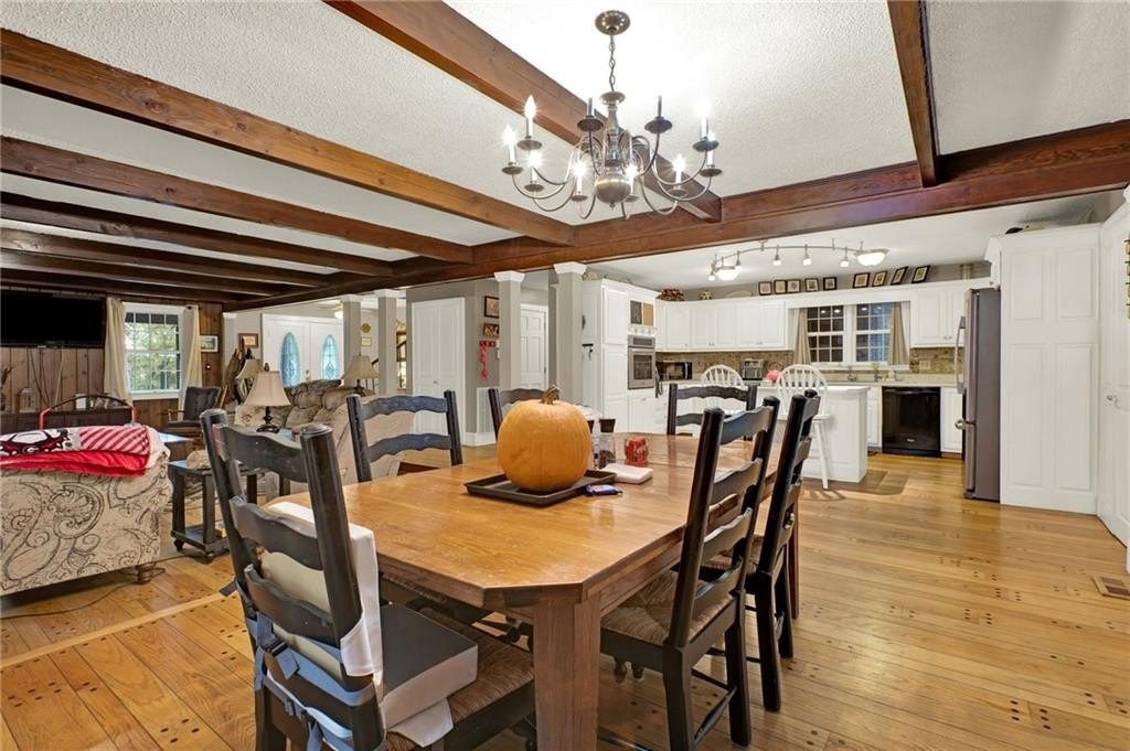 Welcome home to this spacious and beautifully maintained property sitting on just over 1.75 acres across two parcels! The main home offers 4 oversized bedrooms and 3.5 baths, with the primary suite conveniently located on the main level, featuring approximately 500 sq ft of space—your own private retreat. Gorgeous wood floors flow throughout, complementing the open-concept kitchen and dining area, perfect for entertaining or family gatherings. Enjoy your morning coffee on the front porch or beautiful sunroom while still enjoying the natural view. The sunroom leads out to a large deck complete with a hot tub.
