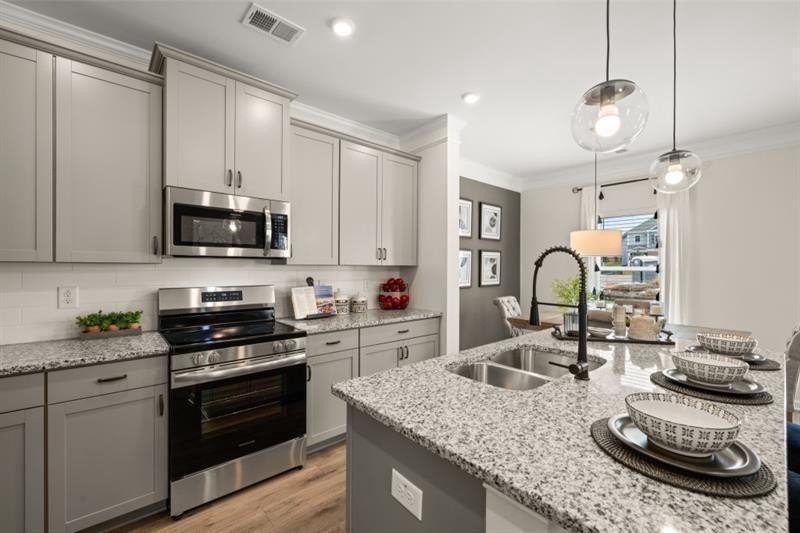 Move in Ready January! The Norwood II plan, located in Smith Douglas Homes The Stiles community. This 3BR/2.5BA townhome features a convenient drop-zone at the Owner's entrance off the garage. Easy access for putting away those groceries! The kitchen has a center island, upgraded 42" upper cabinetry for additional storage, Quartz countertops with a tile backsplash and dining area overlooking the family room. Back patio. The second story is accessible via the open iron rail staircase leading to a loft area suitable for a desk/home office work station, a laundry room, two secondary bedrooms with a shared bath and the primary suite with a tray ceiling and ensuite bath. Nine ft ceiling heights on both levels. The Stiles is a swim community and the lawn maintenance included in your HOA fees leaves you more time to do the things you love! Photos are representative of plan not of actual home being built. Seller incentives with the use of preferred lender.