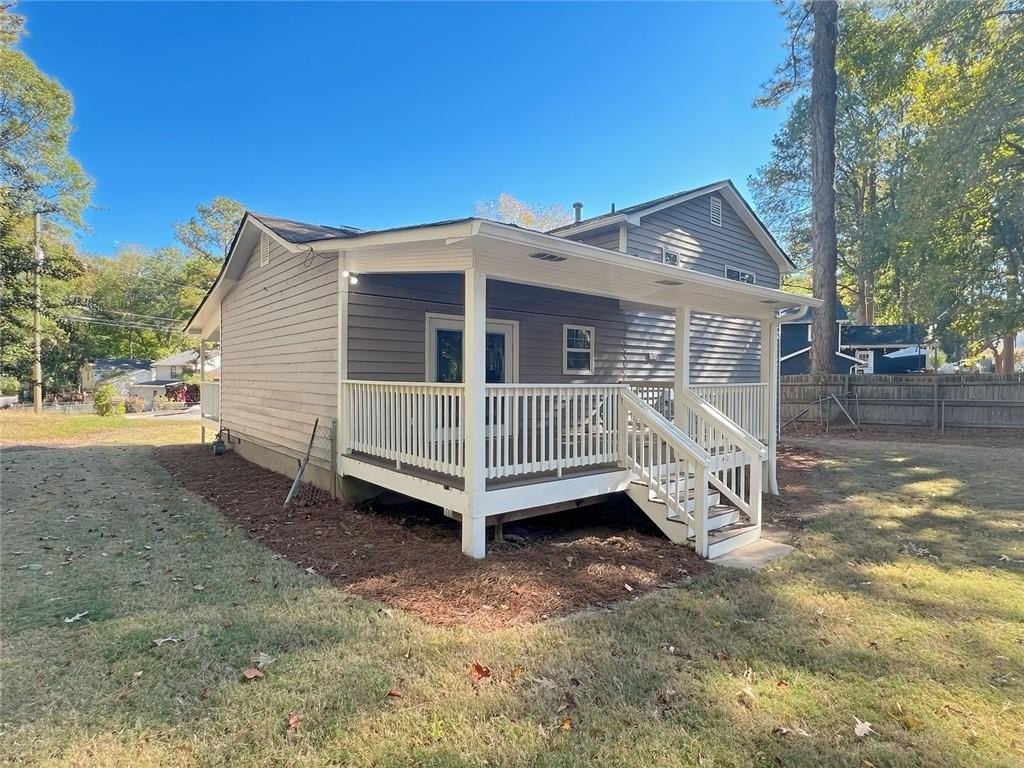 Welcome to this beautifully renovated three-bedroom, two-bathroom home that perfectly blends modern style, comfort, and convenience. Step inside to discover a bright open concept layout featuring a stunning modern kitchen with stainless steel appliances, sleek cabinetry, and a spacious island that flows seamlessly into the dining and living areas, ideal for entertaining guests or relaxing with family. Upstairs, you will find three spacious bedrooms, including a large primary suite with its own private bath. Two additional bedrooms share a well-appointed full bathroom, offering comfort and functionality for everyone. A versatile bonus room provides the perfect space for a home office, playroom, or hobby area, and conveniently houses the laundry room as well. Enjoy the outdoors year-round on the large covered front porch or in the private backyard with a covered patio, perfect for gatherings or peaceful evenings under the stars. Situated on a quiet cul-de-sac, this move-in ready home offers a serene setting just minutes from shopping, dining, medical facilities, parks, and Highway 85. Welcome home!