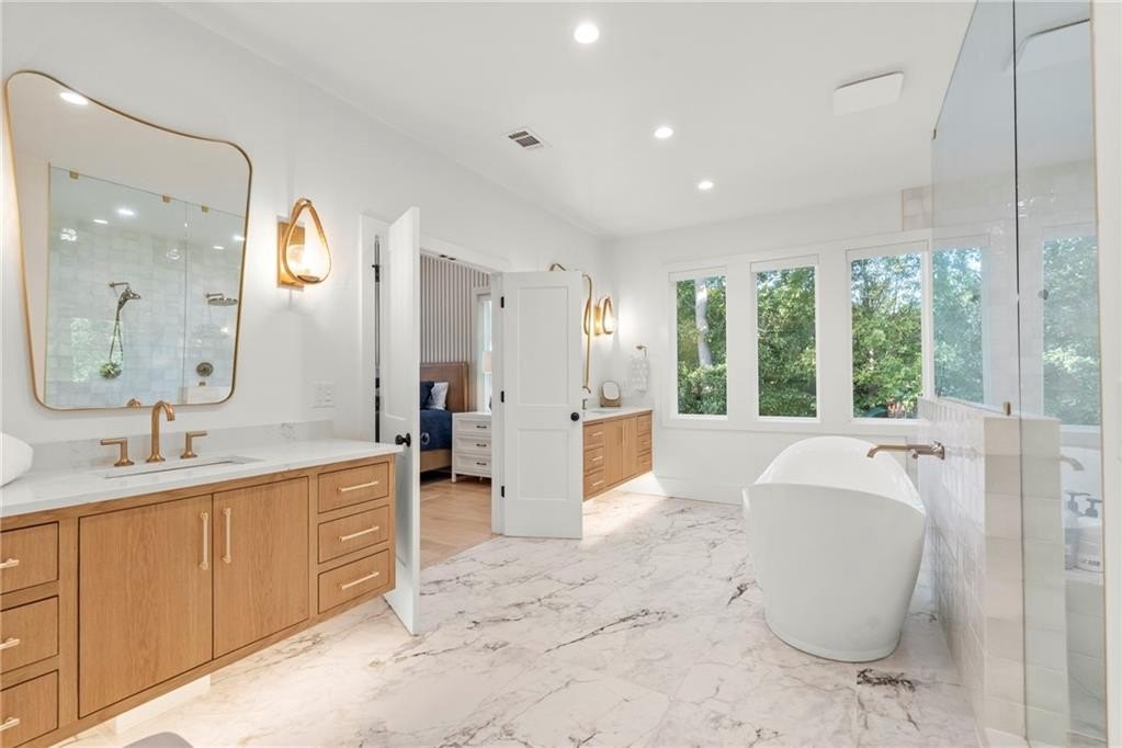 Welcome to Scandinavian sophistication in the Heart of Ashford Park. Step into a world where contemporary elegance meets timeless warmth. The extraordinary Ashford Park residence boasts refined living space. Step inside to the soaring two-story foyer with elegant staircase and dynamic lighting. The home boasts an open, light-filled layout perfect for entertaining. At the heart of the home lies a chef’s kitchen anchored by a grand island, top-tier appliances and a cozy breakfast nook framed by a stunning wood accent wall. The family room invites relaxation with custom built-ins, a modern fireplace, and seamless indoor-outdoor living through sliding doors that open to a covered patio with a second fireplace overlooking the walk-out backyard. Upstairs, retreat to your luxurious owner’s suite, a tranquil sanctuary featuring vaulted ceilings, a spa-inspired bath with double vanities, oversized walk-in shower, and free-standing soaking tub. The finished third level includes an additional bedroom with full bath and an oversized flex-room. All of this nestled within one of Brookhaven’s most coveted neighborhoods and with-in walking distance to Dresden Village with great shops and restaurants. This home is a work of art designed for living beautifully with top-rated schools and effortless access to Atlanta’s main arteries – I-85, I-400, I-75, and I-285. Owner’s recently gained approval from the city for additional sq footage to the property from adjacent alley ways.