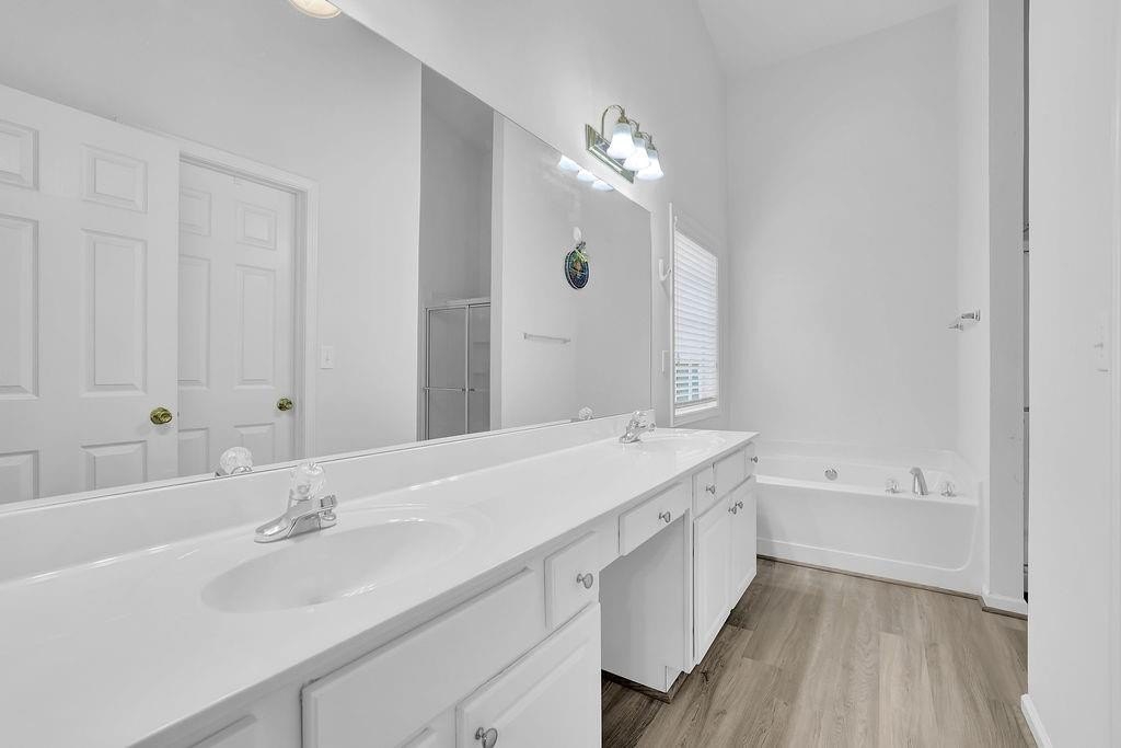Welcome home to this charming ranch featuring 3 bedrooms, 2 bathrooms nestled in the community of Brickshire! Recently replaced flooring and freshly painted throughout! Step inside to discover two separate living areas featuring a cozy fireplace and high ceilings, creating a warm and spacious living space! The kitchen overlooks the separate dining room that is ideal for entertaining or quality family time. Oversized masters suite featuring spacious en-suite bath and walk-in closet. Outside, a private covered patio offers the perfect spot for entertaining or enjoying peaceful moments outdoors. Located just minutes from schools, shopping, and dining! This home combines comfort, style, and convenience. Don’t miss your chance to make this beautiful home your own, schedule a showing today!