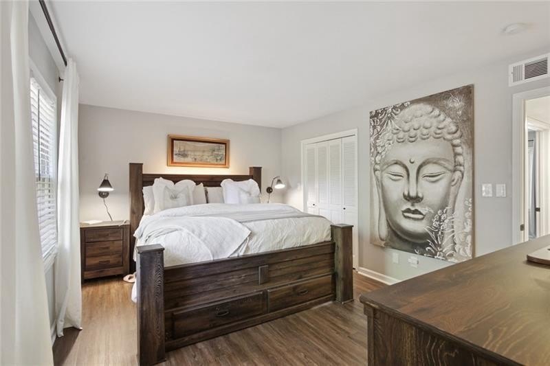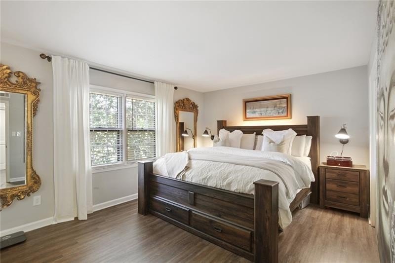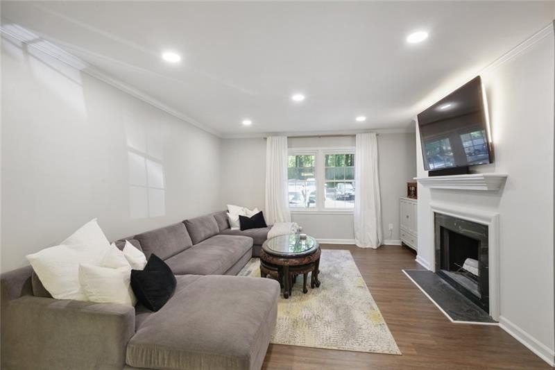 Gated Community, Mid-level, Golf Course unit, Renovated in white! You will love the view from the oversized sunroom of the 3rd & 4th holes! Outdoor Patio for your use is just 1 flight of stairs. Renovated to the studs kitchen with white shaker cabinets, seamless quartz countertops, new appliances. New LVP floor installed throughout the home. Freshly painted in neutral palette, new windows throughout (except 1 in primary bedroom) Smarthome lighting system, wood-burning fireplace & just 5 steps to front door! New vanities with marble tops and mirrors in the bathrooms. 2020 Water heater & HVAC! Cross Creek is a secure neighborhood with 24-hr Guard Gate person & cameras that capture license plates. 10 Electric Vehicle Charging Stations being installed. The neighborhood features a par-3, 18-hole golf course with golf shop & pro, 3 pools with clubhouses (1 has a lifeguard from Memorial Day through October,) 4 tennis courts, pickle ball, gym, restaurant & bar and pedestrian lanes on the Parkway for easy walking, running or dog-walking! Cross Creek is 15 minutes to airport, easy access to Midtown, Buckhead and 75. Sited on over 110 acres of natural landscaping, flowering trees & shrubs, it is hard to believe you are minutes from the city!