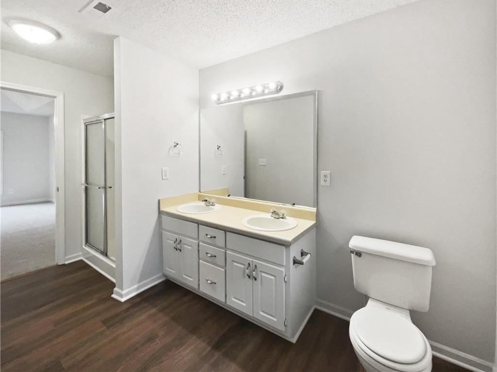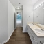 spa-like bath featuring a soaking tub, separate shower, and dual vanities—self-care never
