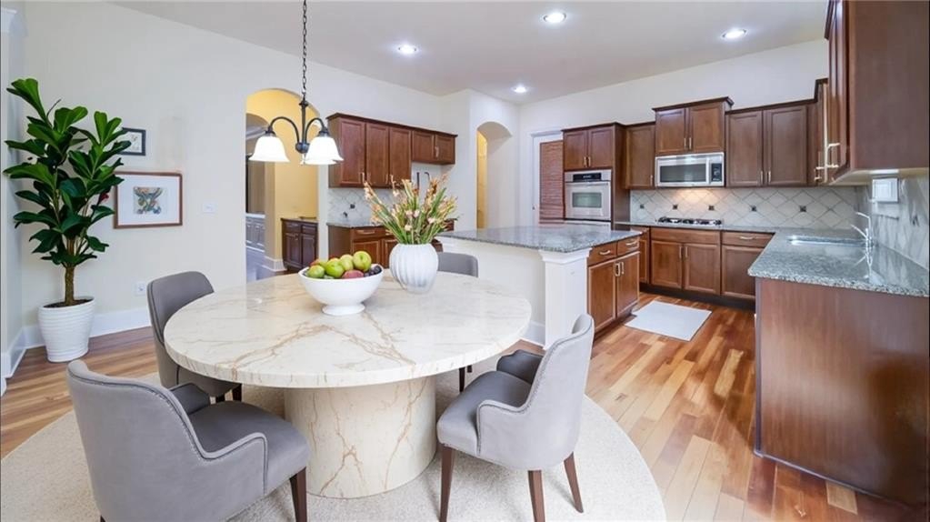 Welcome Home! Enjoy this Gated community home featuring a 4 sided brick home with 1.76 acres of privacy in the back and a side entry 3 car garage. A new architectural shingled roof was installed this year and the HVAC units were replaced in 2024! The main level features hardwood floors, a 2 story foyer, office/study, large dining room, and guest bedroom with full bath. A butler's pantry connects the dining room to the gourmet kitchen with granite counters, decorative tile backsplash, double ovens, gas cooktop, oversized island, and an open view to the family room. A walk-in pantry and laundry room finish off the main level. The owner's suite has everything you can ask for - great natural light, a sitting room, his and her closets, double vanities, soaking tub, and separate shower. An additional bedroom with an en-suite bath and 2 bedrooms that share a Jack-and-Jill bathroom. The finished terrace level is where the fun begins! Enjoy football games and movie nights in the theater room, set up your own gym in another space, and host guests in the bedroom and full bath. Finally there is a large recreation room with windows offering unlimited entertaining options. Outside you have a large deck, a covered alcove for those rainy days, and an extended patio on the lower level. Additional features include a sprinkler system, exterior gas line hookup, and an additional water line for a refrigerator in the garage. Too Much to List! Must See!!!