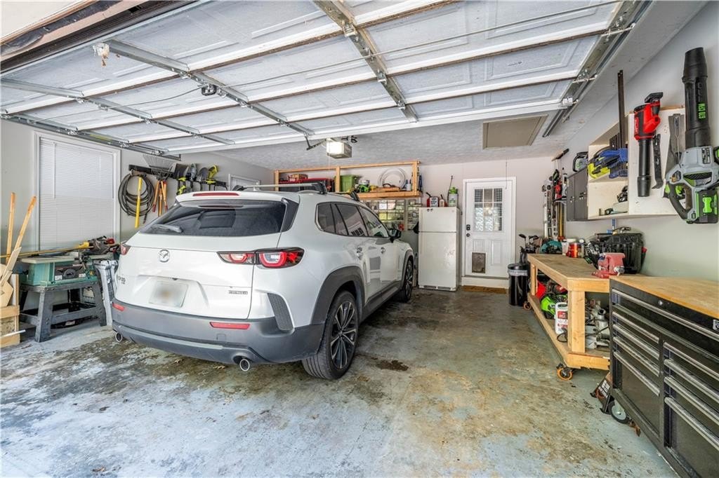 the serene surroundings. The oversized garage and ample driveway parking make hosting a