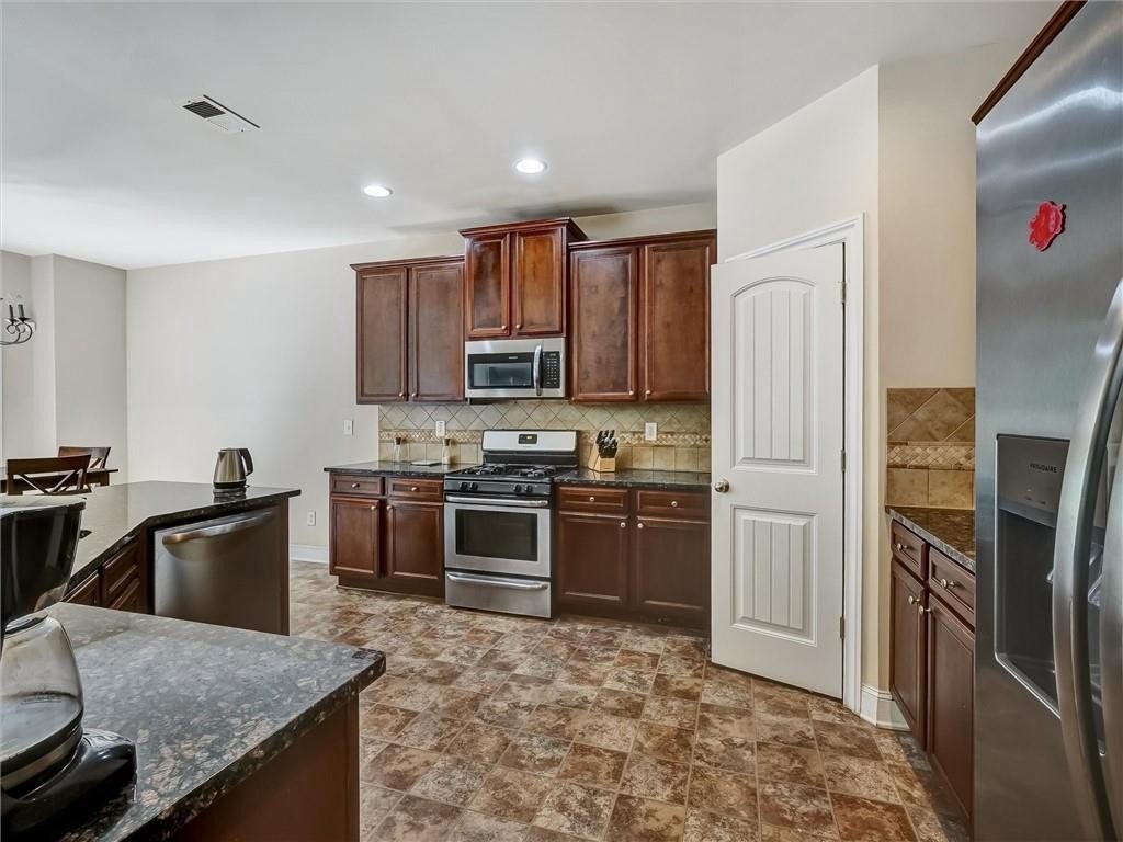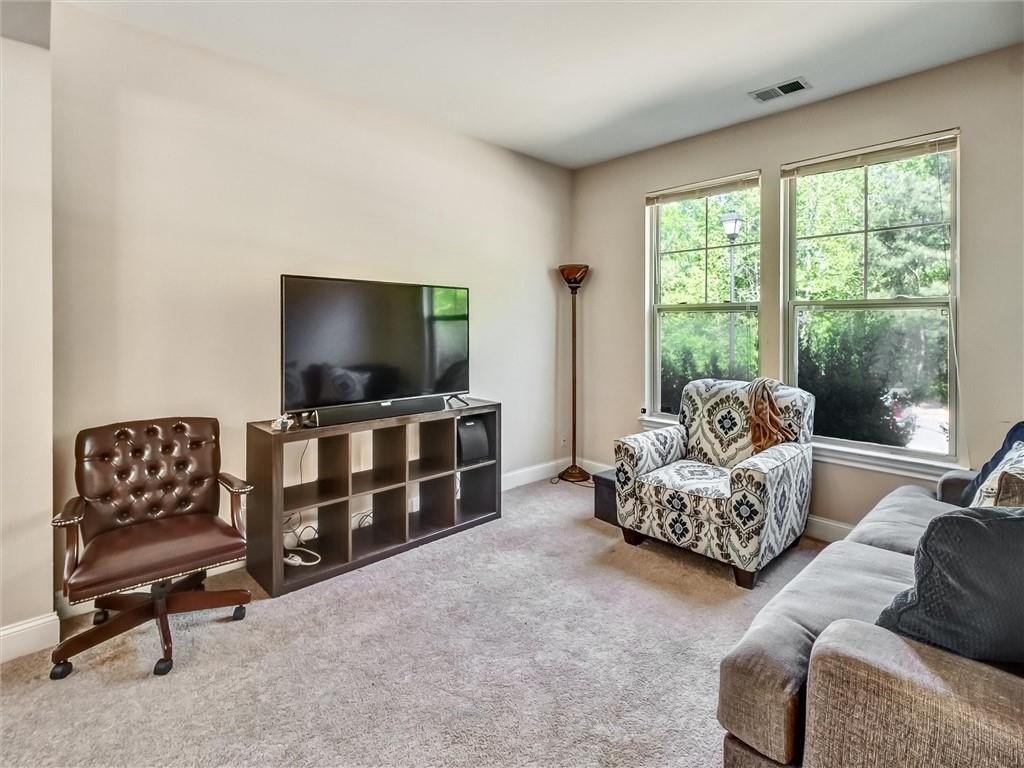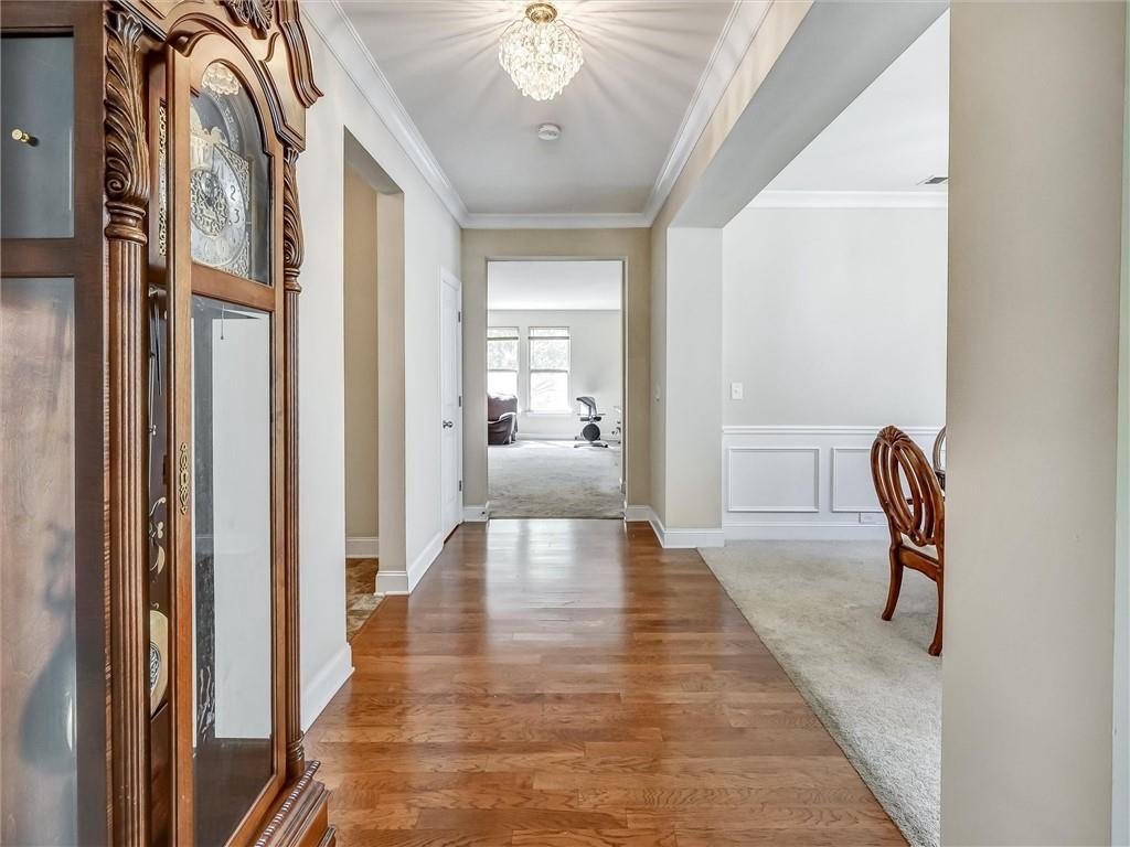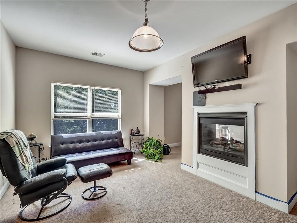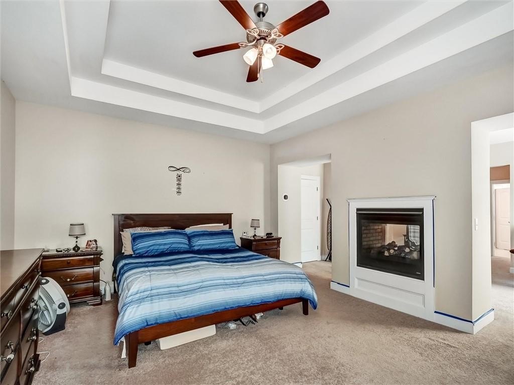 Stunning Clairmont plan, one of the largest floorplans available, features 4 bedrooms and 3.5 baths with elegant hardwood foyer flowing into open living and dining areas. The chef's kitchen boasts breakfast bar overlooking the family room, stainless appliances, granite countertops, and custom tile backsplash. Family room showcases coffered ceilings and corner fireplace, extending to a light-filled sunroom. Spacious upper-level bedrooms include a luxurious master suite with sitting area, fireplace, and convenient morning bar. Master bath offers dual entry closets, soaking tub, and custom tiled shower. Two additional full baths and versatile loft/media space complete the upstairs living area. This home is equipped with built-in water filtration and security cameras. Wooded backyard provides privacy while a natural wooded area across the street (no homes facing the property) gives you both seclusion and beautiful views.