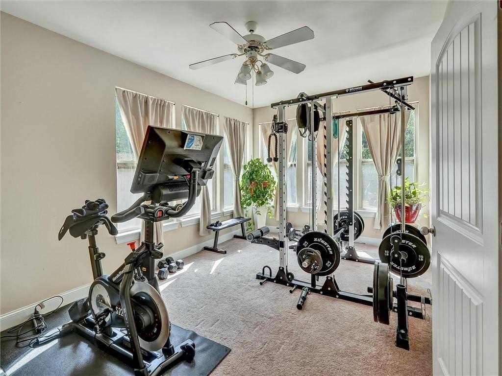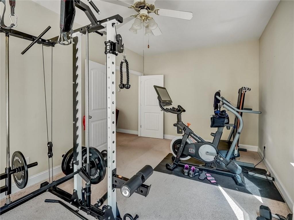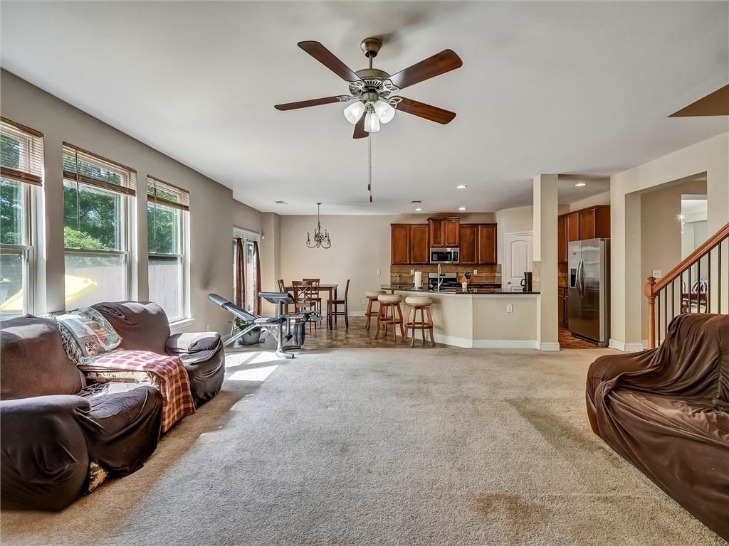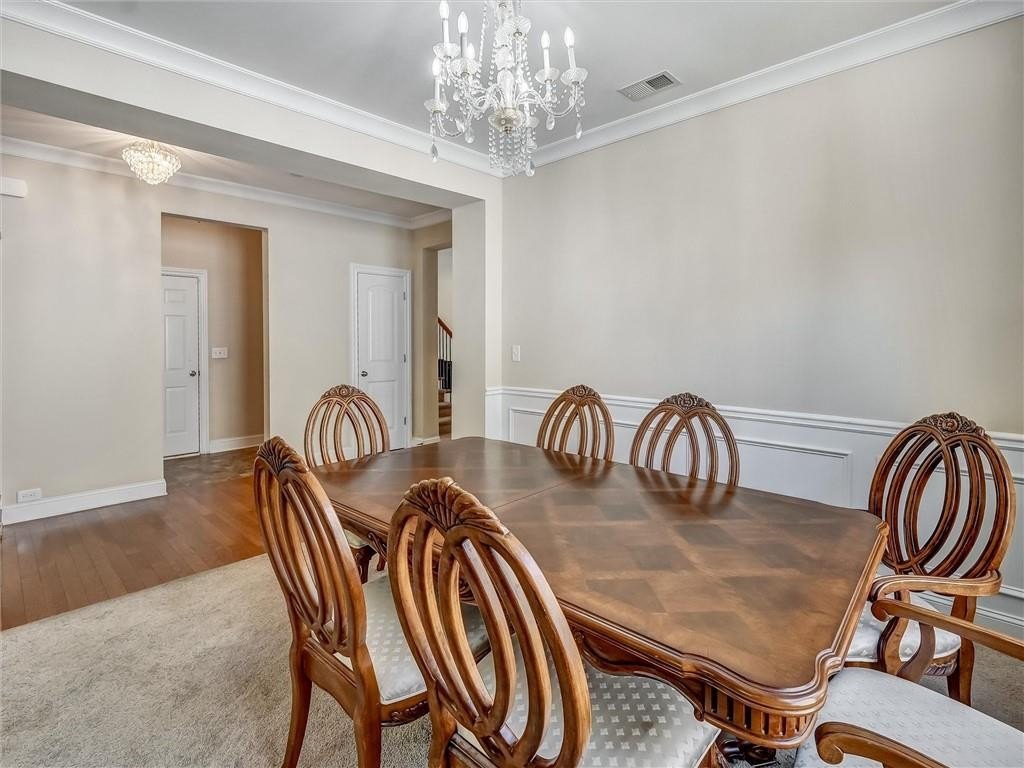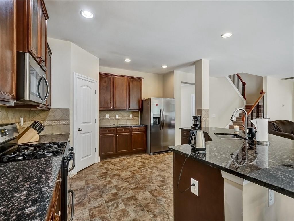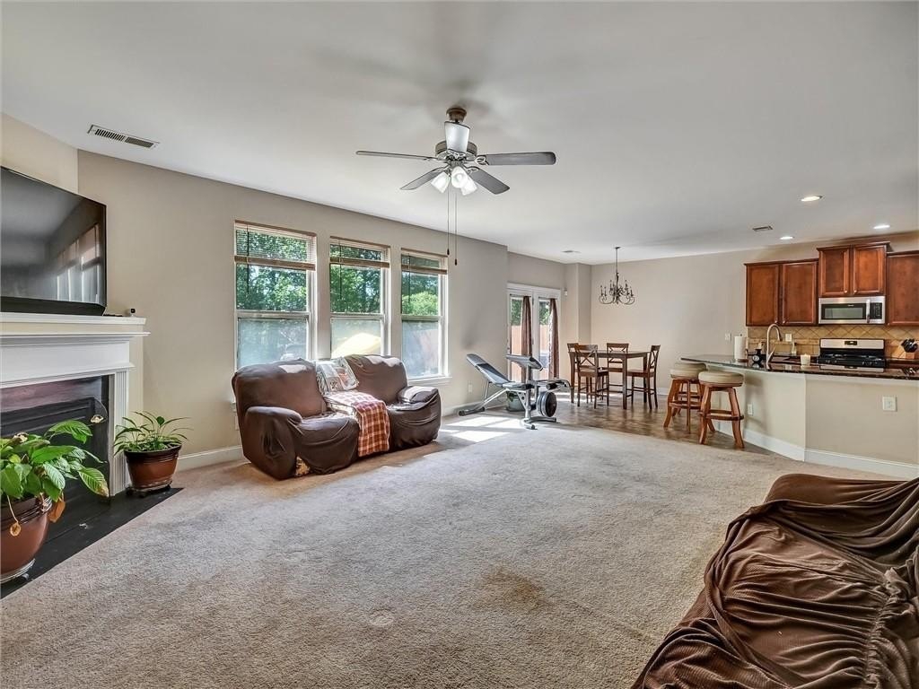 Stunning Clairmont plan, one of the largest floorplans available, features 4 bedrooms and 3.5 baths with elegant hardwood foyer flowing into open living and dining areas. The chef's kitchen boasts breakfast bar overlooking the family room, stainless appliances, granite countertops, and custom tile backsplash. Family room showcases coffered ceilings and corner fireplace, extending to a light-filled sunroom. Spacious upper-level bedrooms include a luxurious master suite with sitting area, fireplace, and convenient morning bar. Master bath offers dual entry closets, soaking tub, and custom tiled shower. Two additional full baths and versatile loft/media space complete the upstairs living area. This home is equipped with built-in water filtration and security cameras. Wooded backyard provides privacy while a natural wooded area across the street (no homes facing the property) gives you both seclusion and beautiful views.