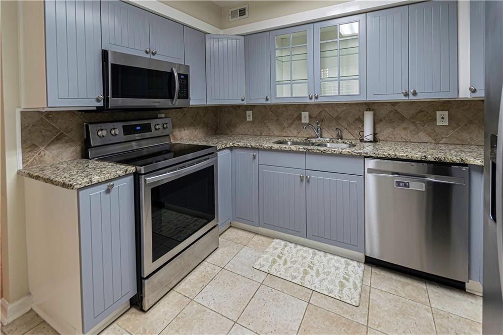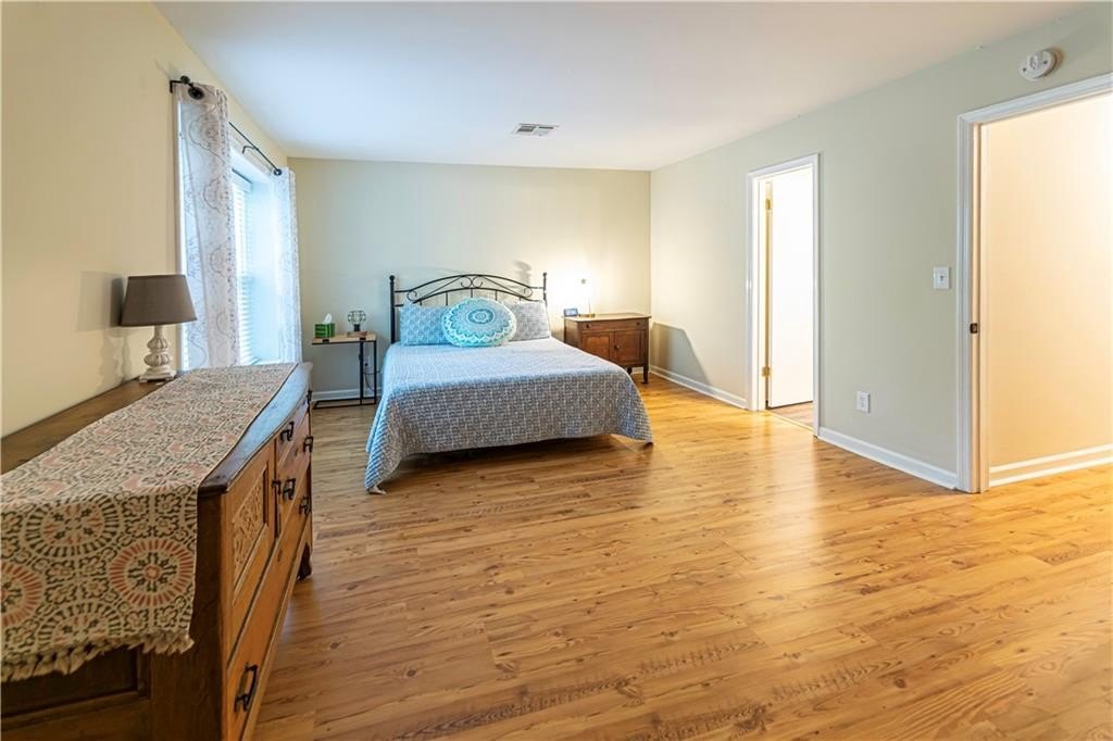 Private End-Unit Condo in Sought-After Community with Lake Access. Tucked away in a well-maintained and peaceful complex, this spacious end-unit condo offers the perfect blend of privacy, comfort, and convenience. Step inside to find beautiful hardwood floors throughout the main level, with durable tile in the entry foyer, kitchen and powder room. A unique flex room on the main floor offers endless possiblities -- use it as a home office, playroom, or additional living space to fit your lifestyle. The updated kitchen features freshly paintd cabinets, granite countertops, and stainless steel appliances, making it both functional and stylish. A separate dining room opens to a rear deck through glass doors -- perfect for entertaining or relaxing outdoors. The large family room invites cozy evenings with its working fireplace, creating a warm and welcoming atmosphere. Upstairs, you'll find three bedrooms and two updated full baths. The oversized primary suite is a true retreat, featuring two walk-in closets and a private ensuite bath. Love the outdoors? Bring your canoe or kayak and enjoy the community lake, or spend time at the private beach area. Whether you're fishing, relaxing, or simply soaking in the natural beauty, this community offers rare amenties you won't find elsewhere. Located in an area known for award-winning schools, abundant shopping, and easy access to I-85 and I-285, this home combines the best of peaceful living with everyday convenience.
