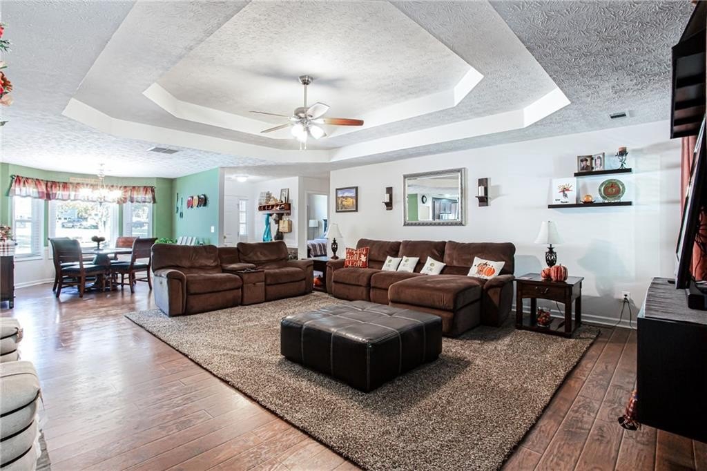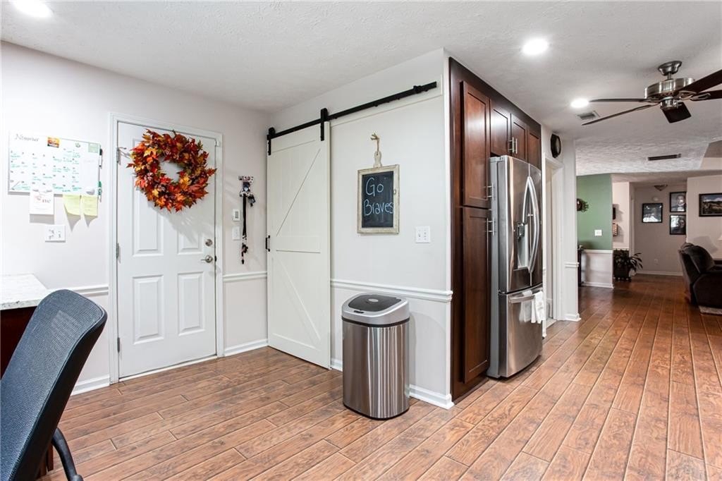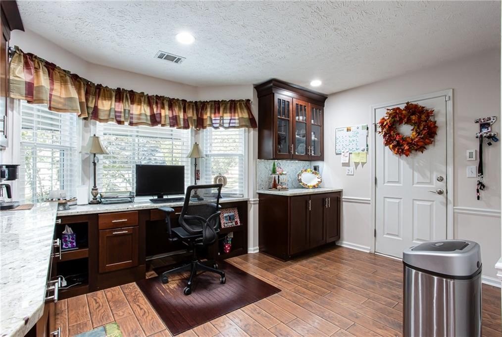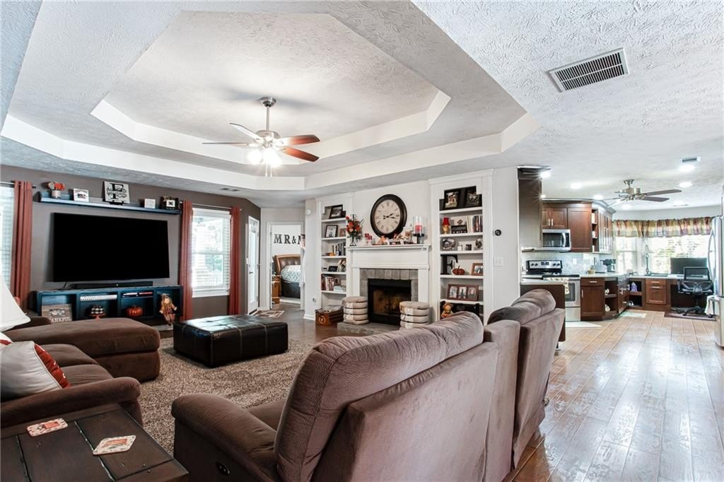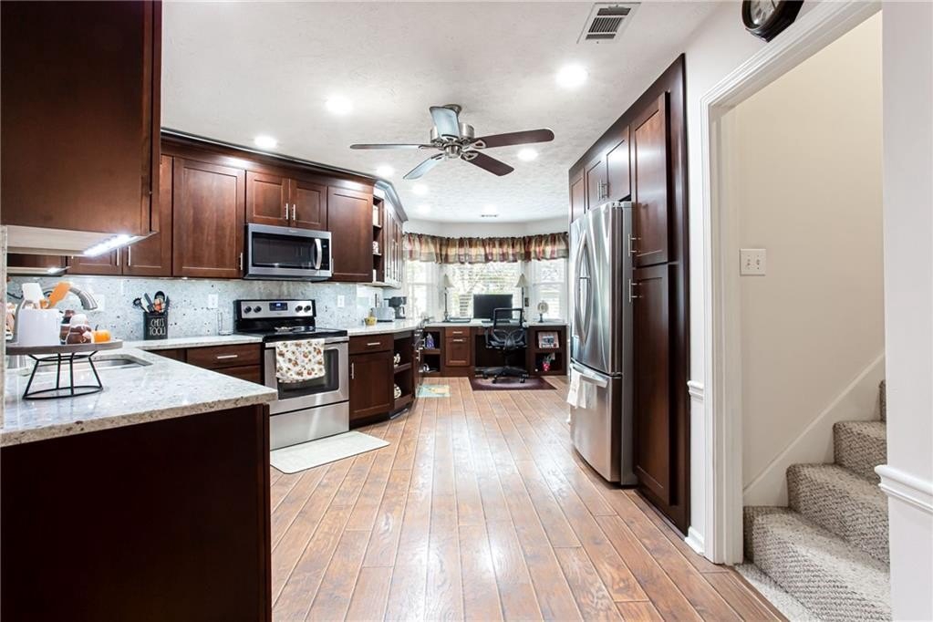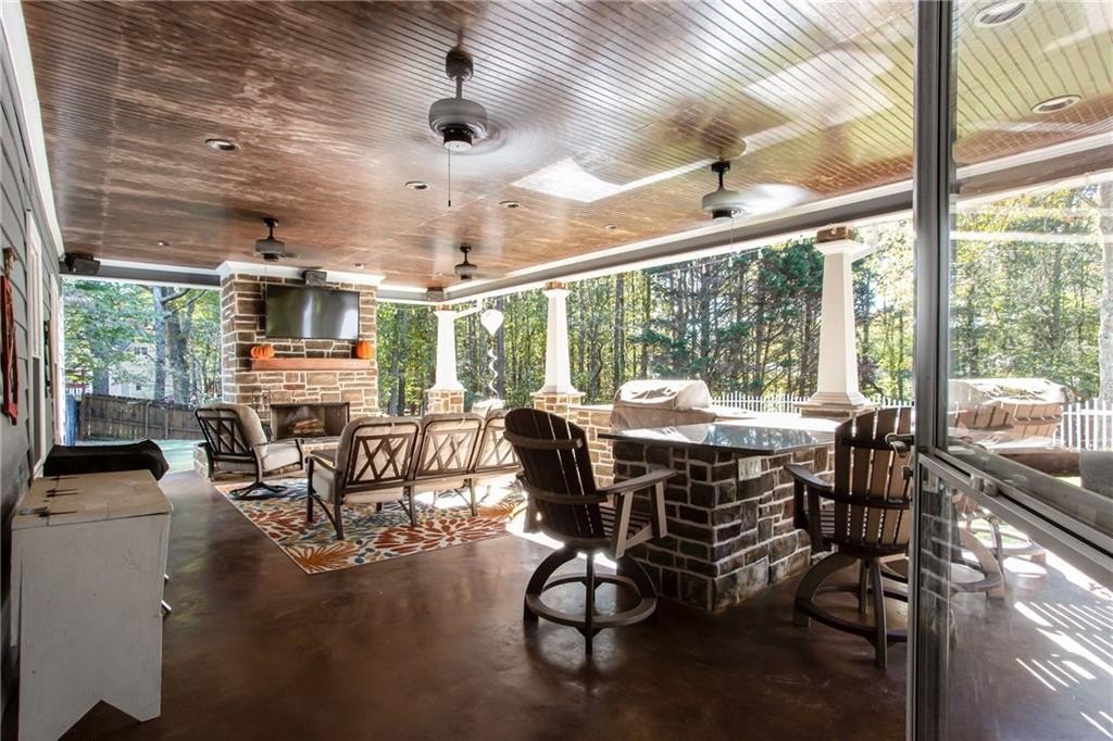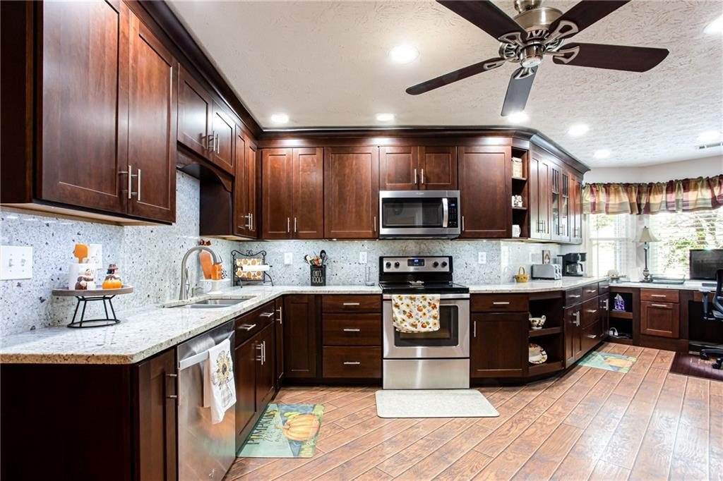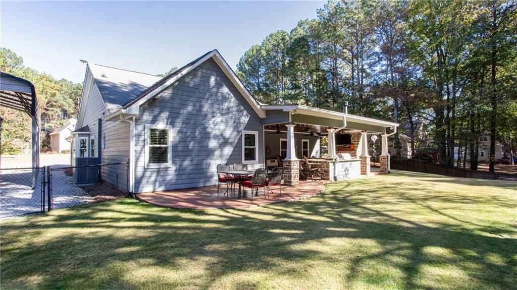 Well maintained ranch with 3 bedrooms and 2 full baths plus bonus room awaits new owner. One ACRE rectangle lot with No HOA. Split bedroom plan has large primary bedroom. Kitchen has been fully renovated with granite countertops and backsplash, SS appliances, and custom dark cherry cabinets. The office space in the kitchen can easily converted back to breakfast area by removing the desk top. Separate dining rooms offers space for meals or flexspace. Custom made built-in bookcases with adjustable shelving was added around the stone fireplace in the great room. The bonus room is perfect for craft room, TV room, storage or flexspace. Both bathrooms have been updated with tile and cabinet. Across from the bonus room is the door to the attic with huge storage area and spray foam insulation which helps maintain comfortable temperatures. All Windows were replaced with double pane and aluminum frames. Enjoy gatherings or solitude on the extended 18' X 32' covered back porch which includes stone fireplace, TV, built in gas grill and undercounter refrigerator. Plus enjoy the sun on the uncovered patio. Outside is a RV carport 20' X 36' with gray water disposal. There is a large storage building next to RV carport, firewood storage hut in back yard plus another storage building in back of lot. You do not want to miss this fabulous home!