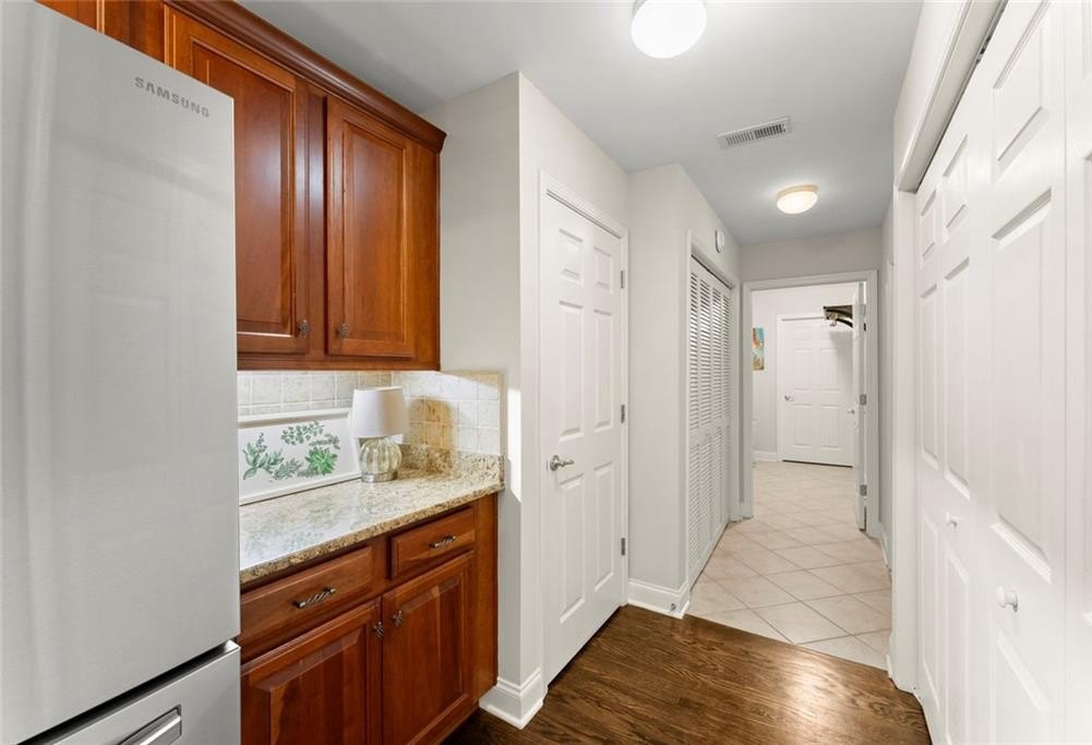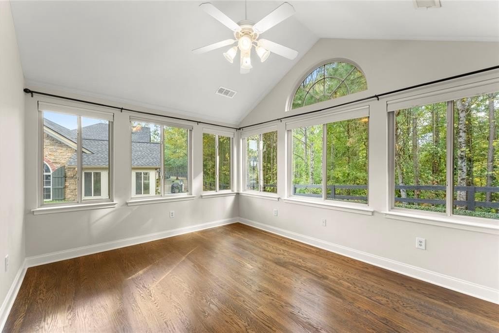 The hardwood floors flow seamlessly through the main living areas, leading to an inviting sunroom and a private patio facing the woods — the perfect peaceful retreat. You’ll also appreciate the oversized laundry room with an extra storage room, so there’s truly never a need to use the pull-down attic.