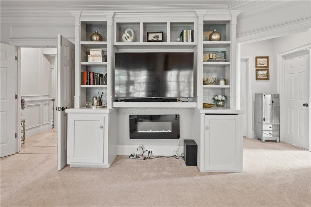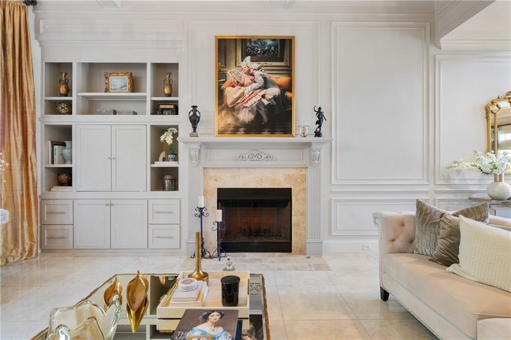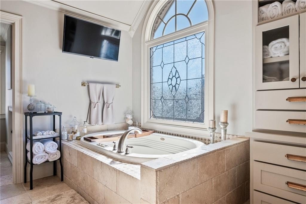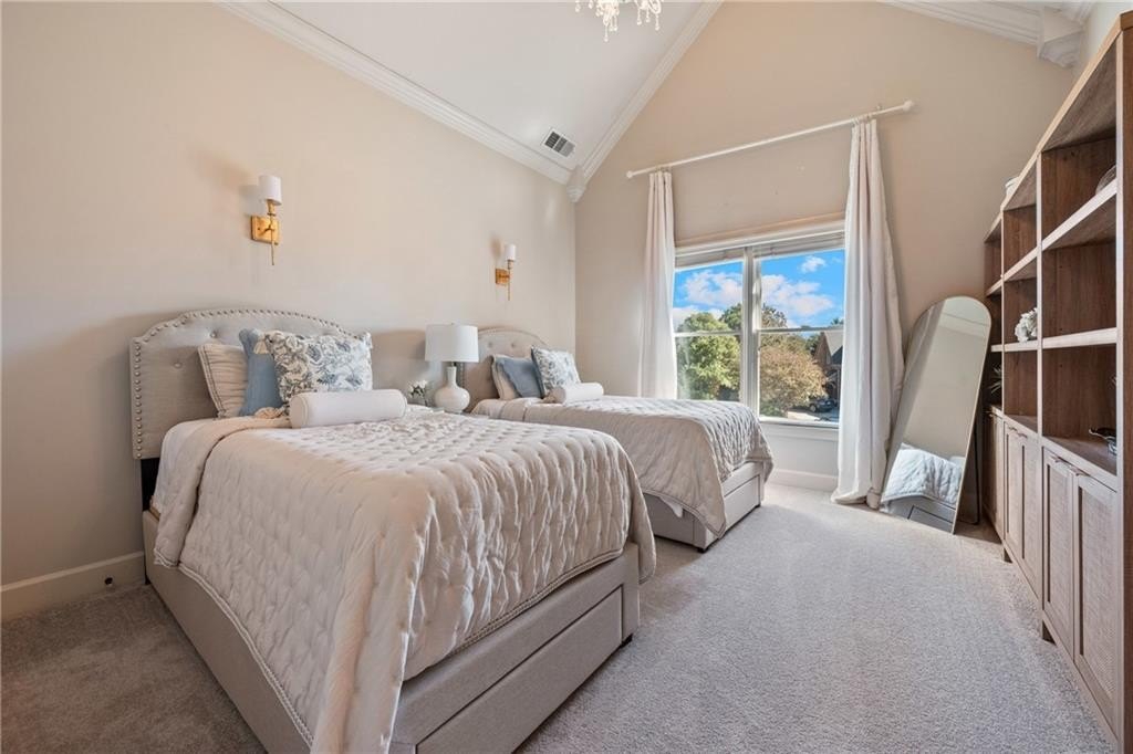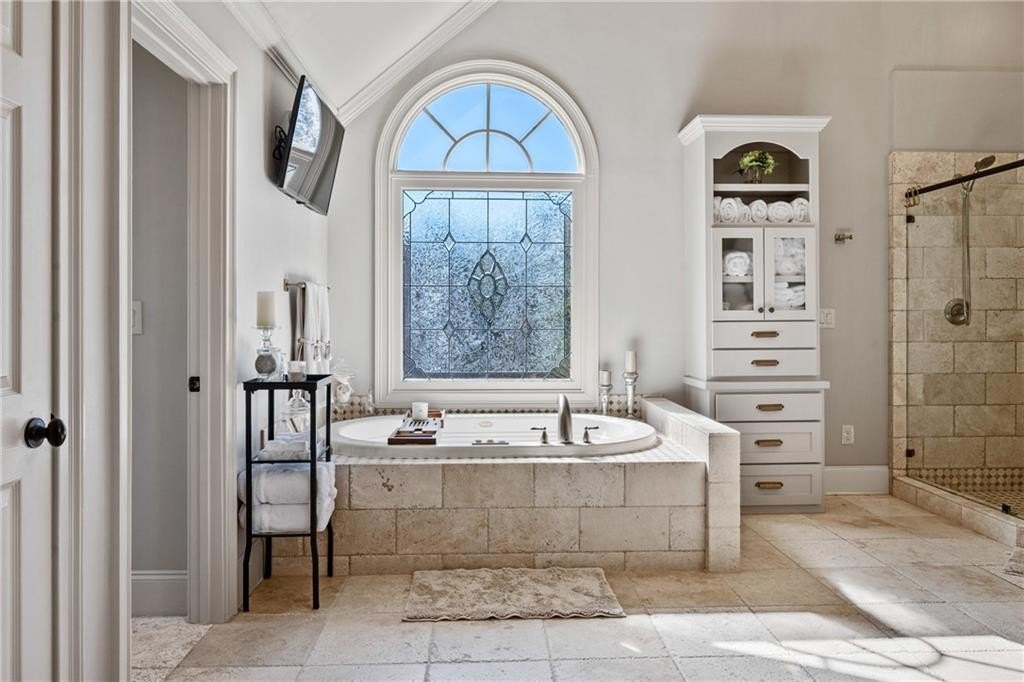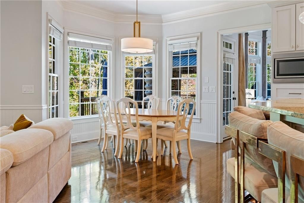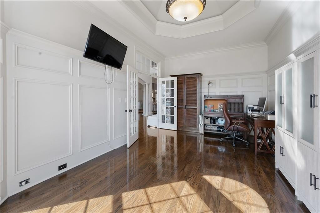 Step through the stunning new wrought iron double door entry into the grand two-story foyer. The main level features refinished hardwood floors, a formal dining room with floor-to-ceiling windows and custom millwork, and a bright great room with a wood-burning fireplace, coffered ceilings, and gorgeous floors. The gourmet kitchen is a showstopper—offering abundant custom cabinetry with new hardware, granite counters, stainless steel appliances, double ovens, two pantries, new pendant lighting, and a custom wine and coffee bar. The open layout flows seamlessly into the sunlit keeping room, complete with built-ins and a cozy gas fireplace. A dedicated office with double-door entry and a guest suite with a fully renovated bath complete the main level.