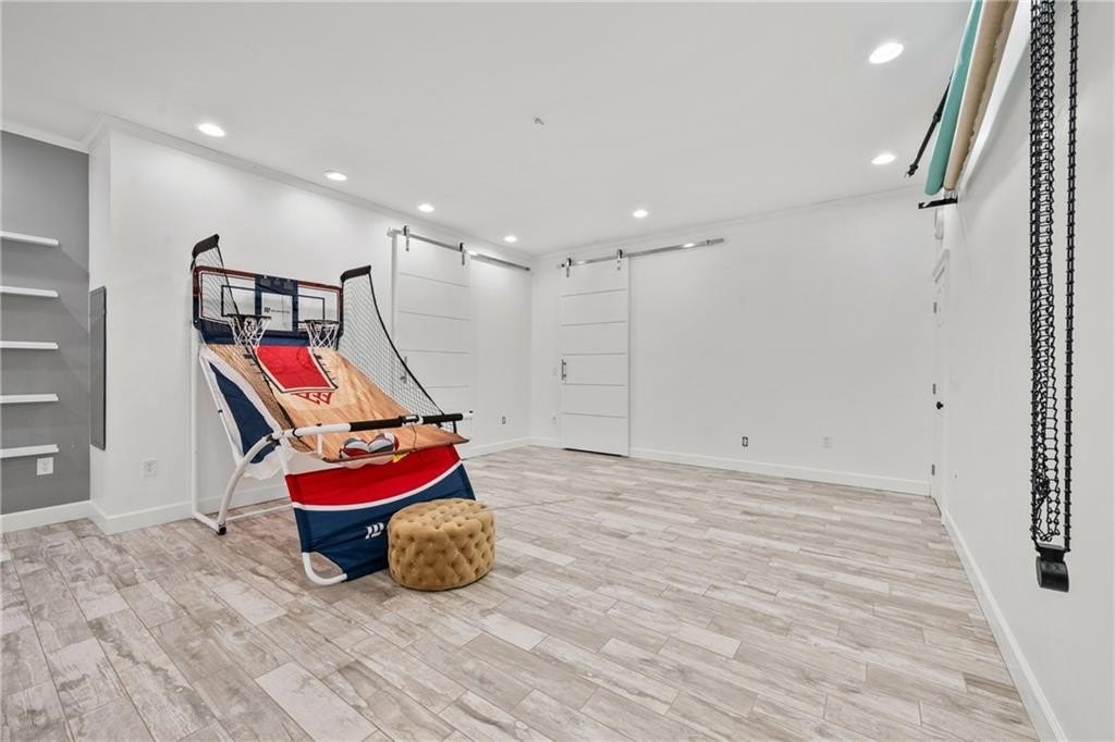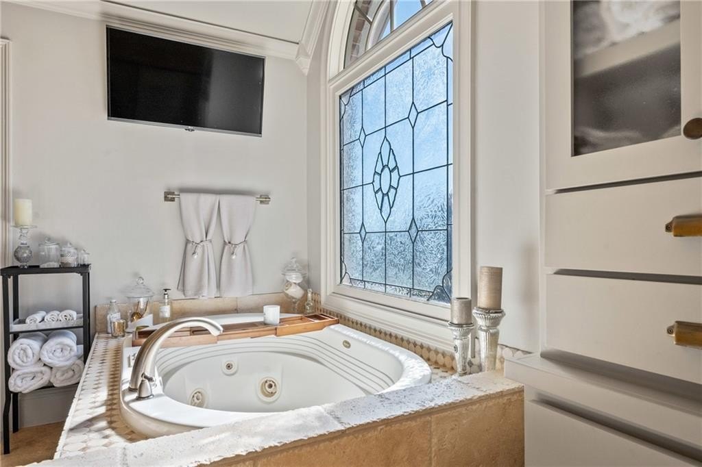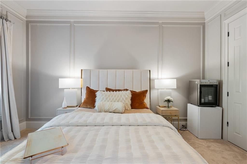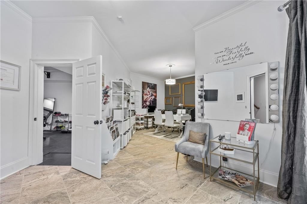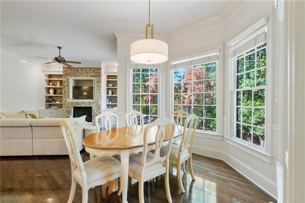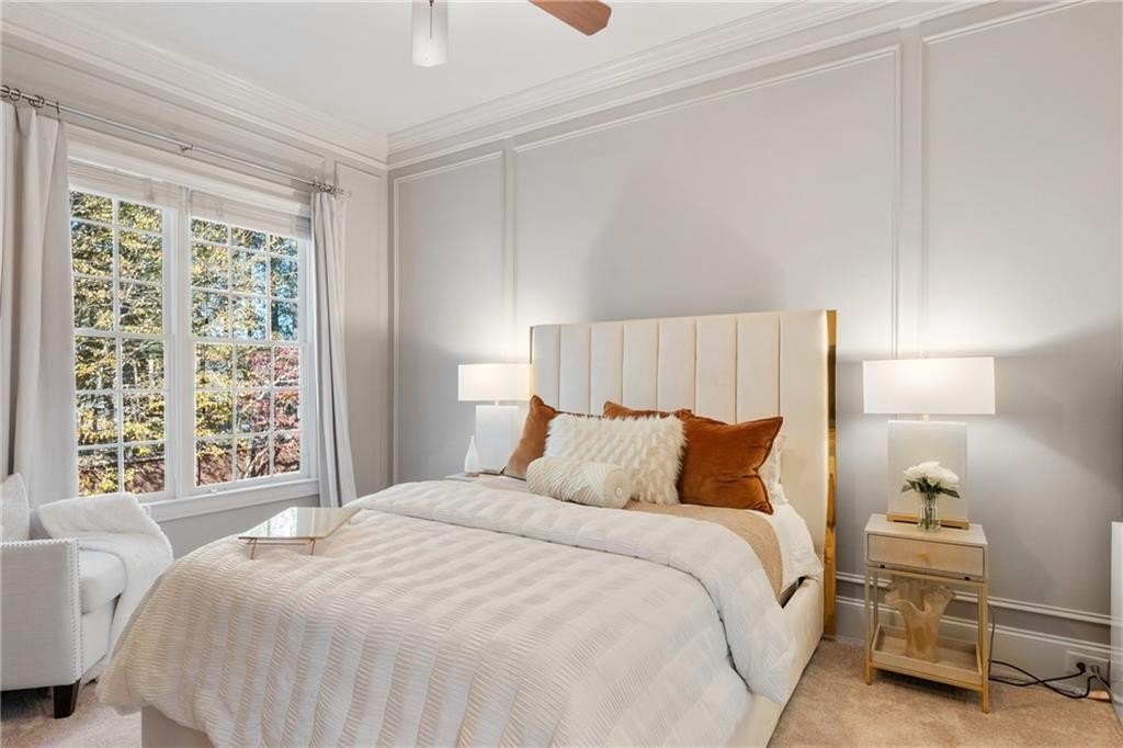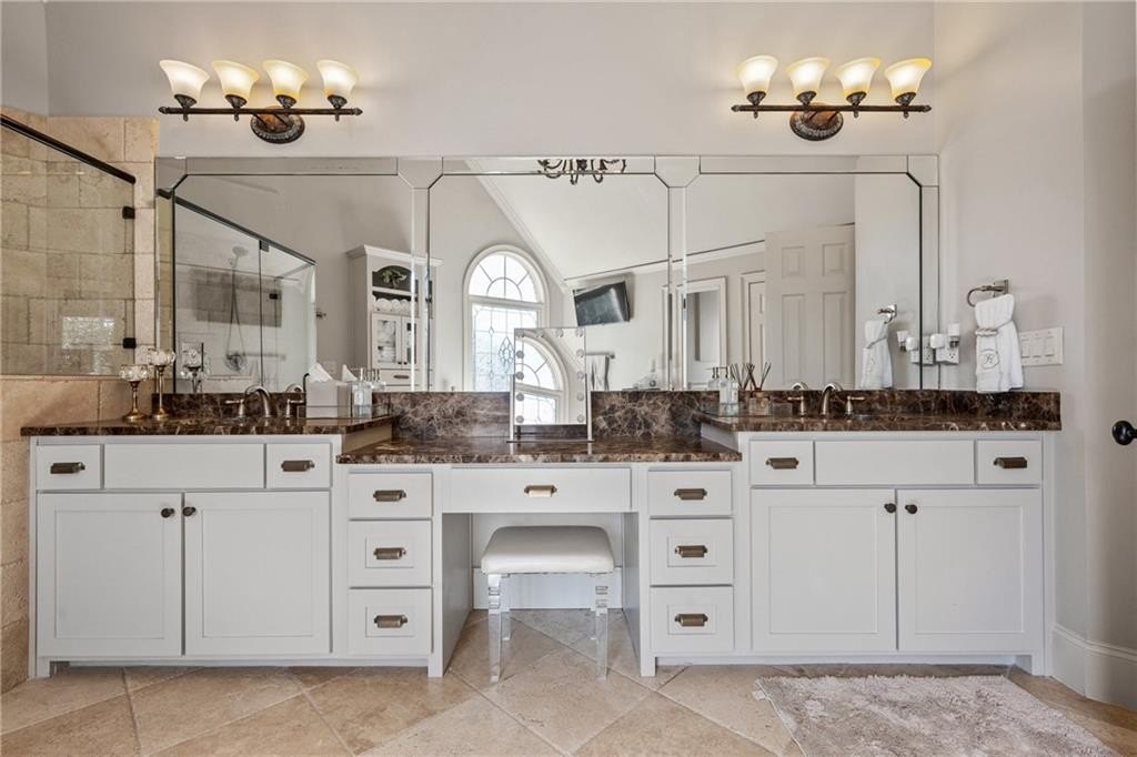 Step through the stunning new wrought iron double door entry into the grand two-story foyer. The main level features refinished hardwood floors, a formal dining room with floor-to-ceiling windows and custom millwork, and a bright great room with a wood-burning fireplace, coffered ceilings, and gorgeous floors. The gourmet kitchen is a showstopper—offering abundant custom cabinetry with new hardware, granite counters, stainless steel appliances, double ovens, two pantries, new pendant lighting, and a custom wine and coffee bar. The open layout flows seamlessly into the sunlit keeping room, complete with built-ins and a cozy gas fireplace. A dedicated office with double-door entry and a guest suite with a fully renovated bath complete the main level.