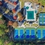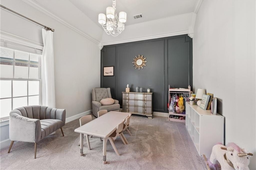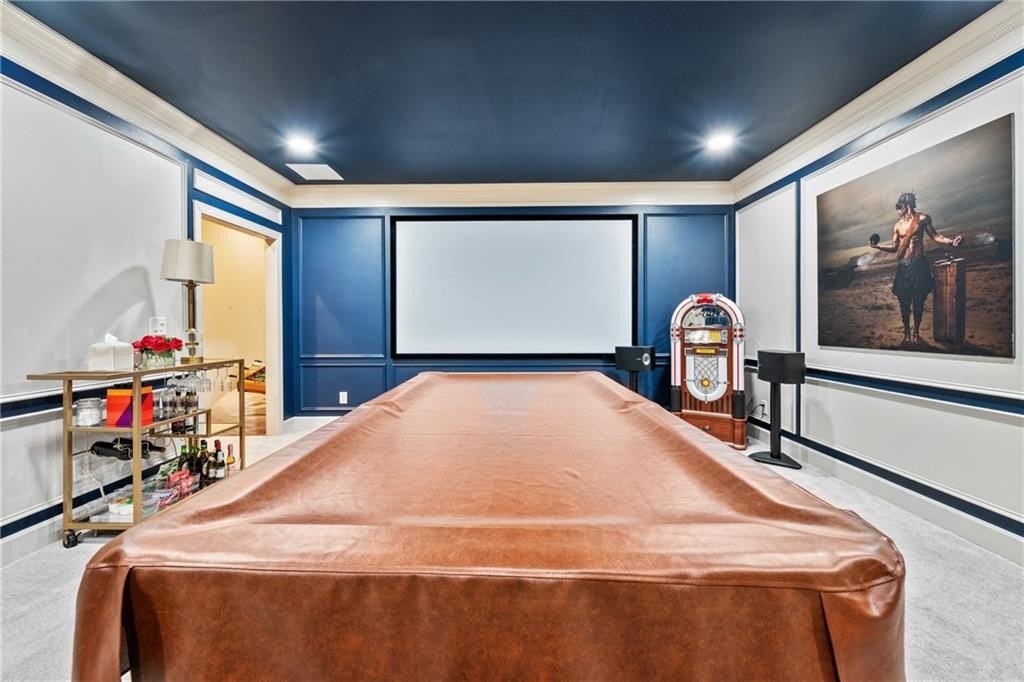Upstairs, you will find the luxurious primary suite, featuring a spacious sitting area, oversized walk-in closets, and a spa-inspired bath with dual vanities, a soaking tub, frameless walk-in shower with dual heads, travertine tile, and custom linen cabinetry. Three additional bedrooms, each with stylish upgrades, custom wall trim and ample closet space, share this level—along with a private theater room perfect for movie nights.