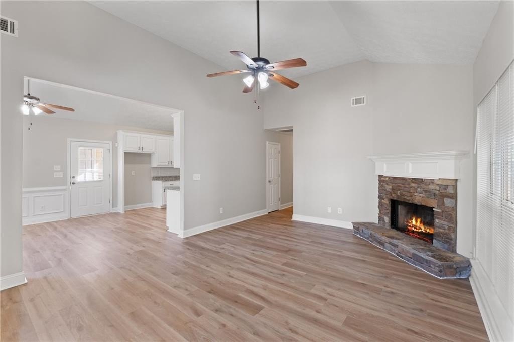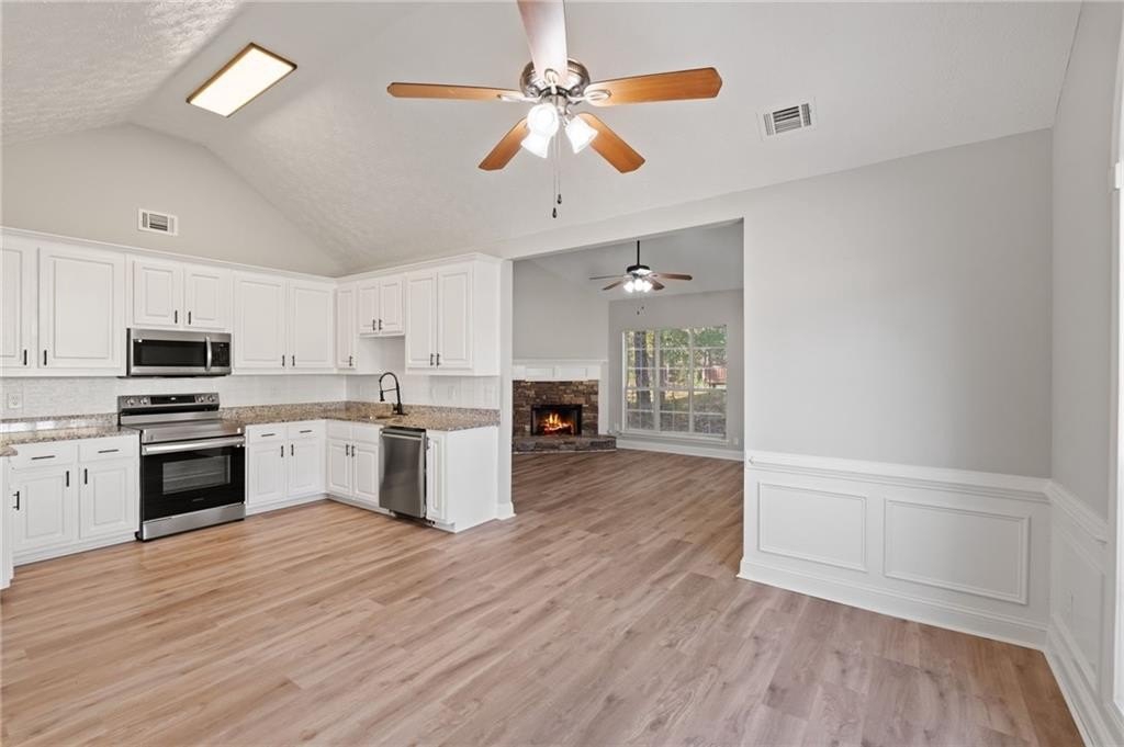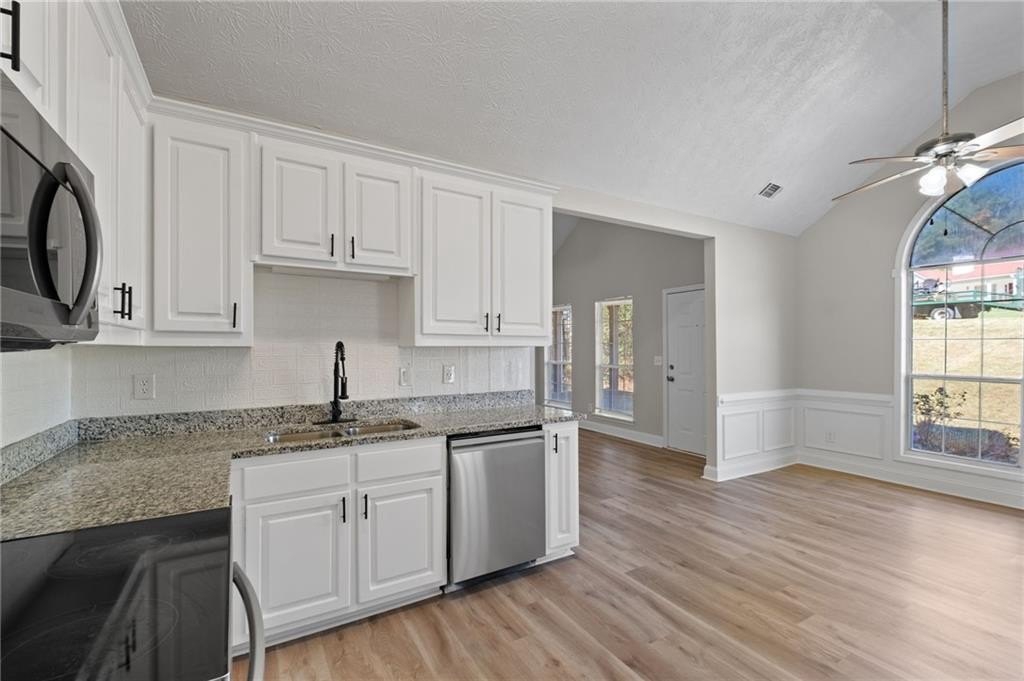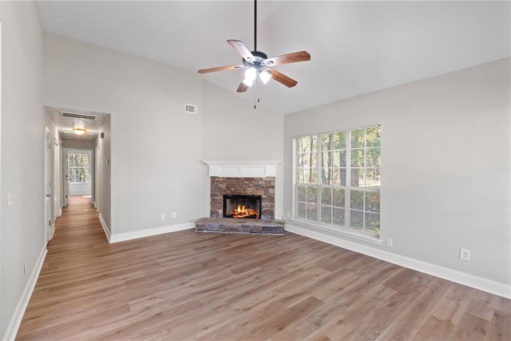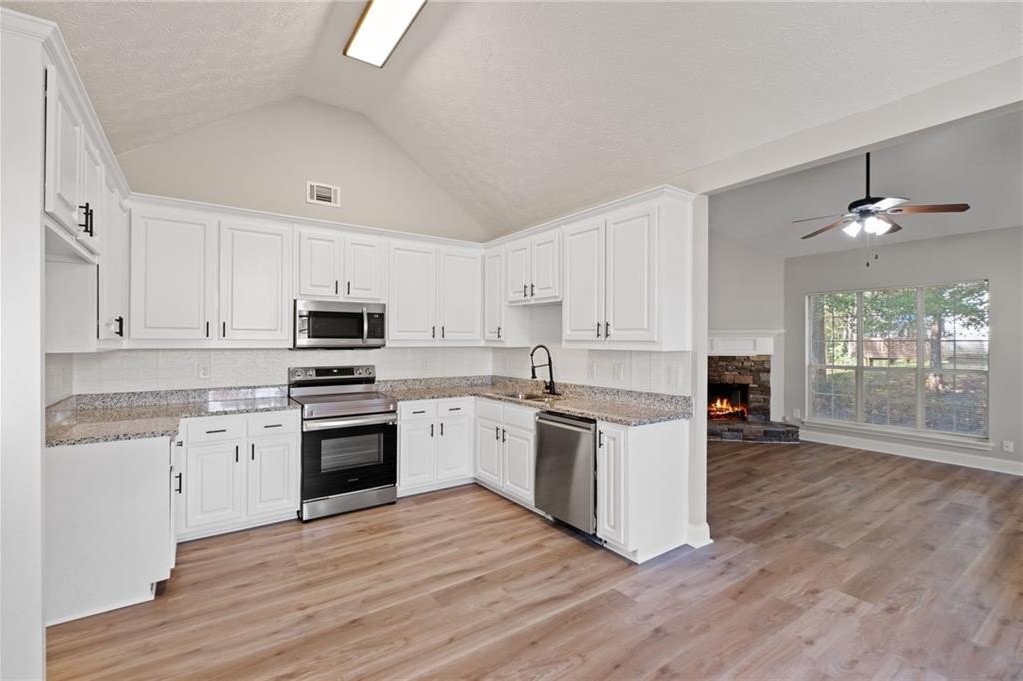 Stunningly renovated 3 bed/2 bath ranch home on ~1.8 acres featuring brand new Luxury Vinyl Plank flooring, new interior paint, newer lighting and plumbing fixtures everywhere, newer granite countertops in kitchen and bathrooms, and newer stainless-steel appliances. Home offers beautiful curb appeal with a 2-car garage. Large open floorplan living room offering large windows to allow in lots of natural lighting, fireplace, and views to the kitchen. Kitchen offers updated granite, plenty of cabinets and countertops space, stainless steel appliances, and large eat-in dining area. Master bedroom offers an En-suite with double vanity, separate soaking tub and walk in shower, low flow toilet, and walk in closet. Two great sized secondary bedrooms and secondary bathroom with tub/shower combo, low flow toilet, and large vanity. Out back the patio overlooks the large fenced in backyard waiting for your personal touch.