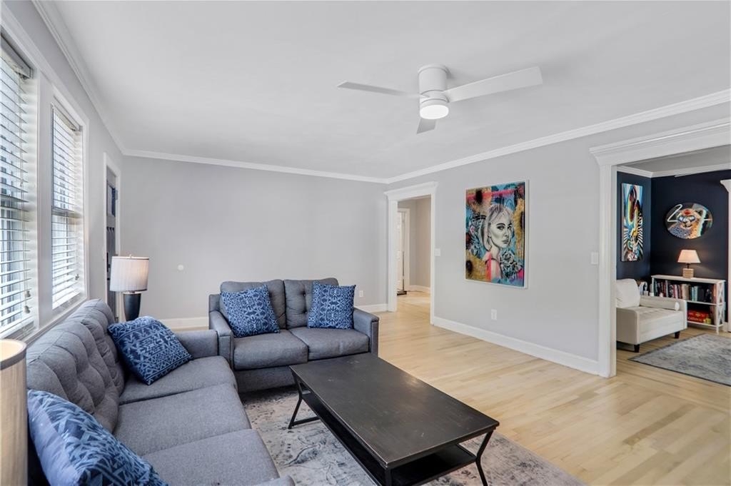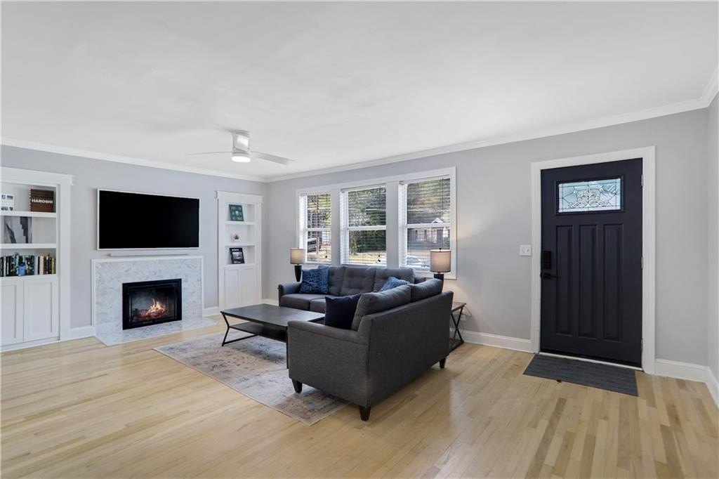 You don’t want to miss this fantastic home overflowing with charm, space, and curb appeal! Full of natural light, this Cape Cod style bungalow beautifully blends the character of an older home with stylish modern updates. Step inside to an expansive living room with light wood floors, abundant sunlight, and an updated fireplace featuring modern tile and built-ins. And here’s a fun twist — one of the bookcases hides a secret door leading to the second floor! The main-level primary is a true retreat with deck access, a spacious walk-in closet, and a tastefully renovated ensuite bath. An additional bedroom and full bath on the main floor offer great flexibility for guests or a home office. The kitchen features an eat-in area plus an additional sitting room, while the separate dining room provides plenty of space for gatherings. Upstairs, you’ll find a cozy flex space perfect for a home office, extra TV area, or that Peleton. Also two additional bedrooms (one with an ensuite bath and large closet), perfect for family or guests. Need storage or room to grow? The full unfinished basement offers incredible potential for future expansion. A covered deck overlooks the flat and fully fenced back yard. Located in a popular, fast-growing area near Grant Park, East Atlanta, and all the BeltLine fun plus, you’re just moments from the brand-new Halidom Food Hall! This home truly has it all light, character, modern updates, and unbeatable location.